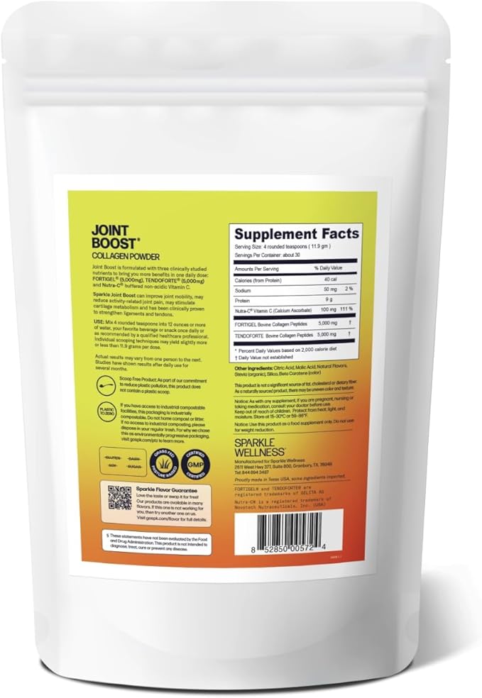Sparkle Wellness Joint Boost (Tropical) [30-Serves] | Collagen Powder Supplement with FORTIGEL & TENDOFORTE Collagen Peptides & Calcium Ascorbate Vitamin C | Supports Joint Mobility