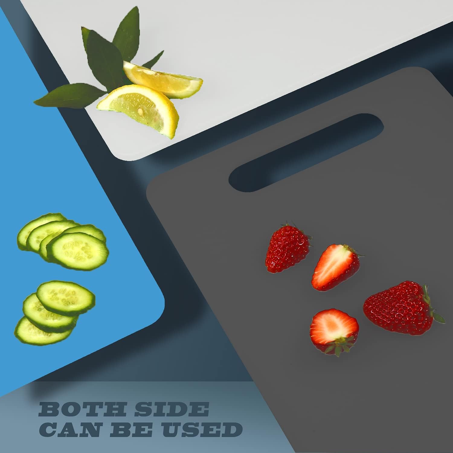 Fotouzy Plastic Utility Cutting Board with Handles, Food Safe PP Material, BPA Free, Dishwasher Safe, Thick Chopping Board, Large Size, Easy Grip Handle, for Kitchen (Blue)