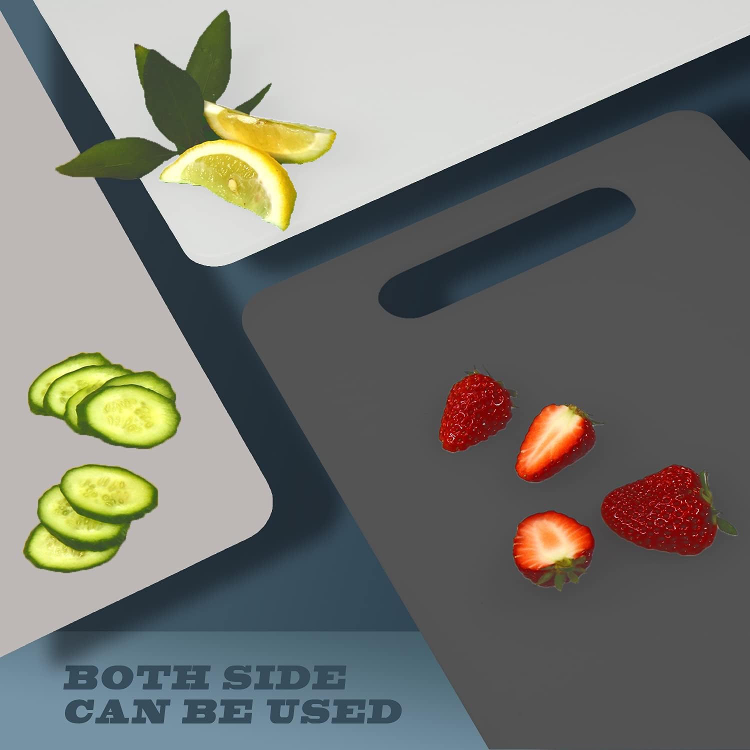 Fotouzy Plastic Utility Cutting Board with Handles, Food Safe PP Material, BPA Free, Dishwasher Safe, Thick Chopping Board, Large Size, Easy Grip Handle, for Kitchen (Almond)