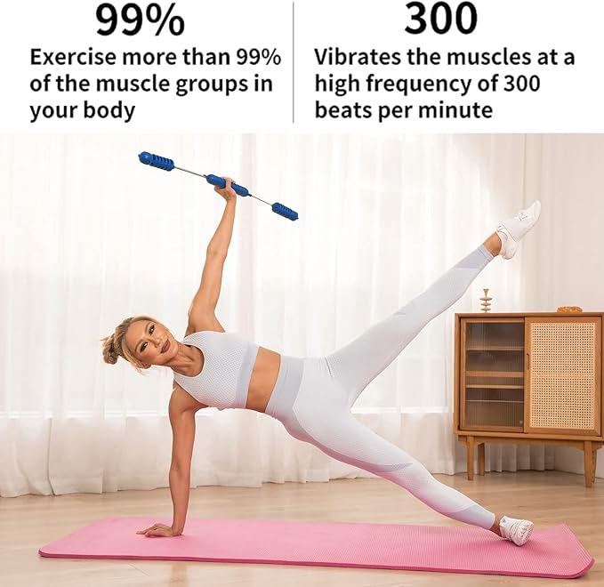 Fitness Exercise Bar,Elastic Fitness Bar,High Frequency Vibration Training Fat Buring Workout Bar for Yoga Pilates Sports,Power Twister for Arm,Abdominal Muscles Strength Exercises In Home Gym