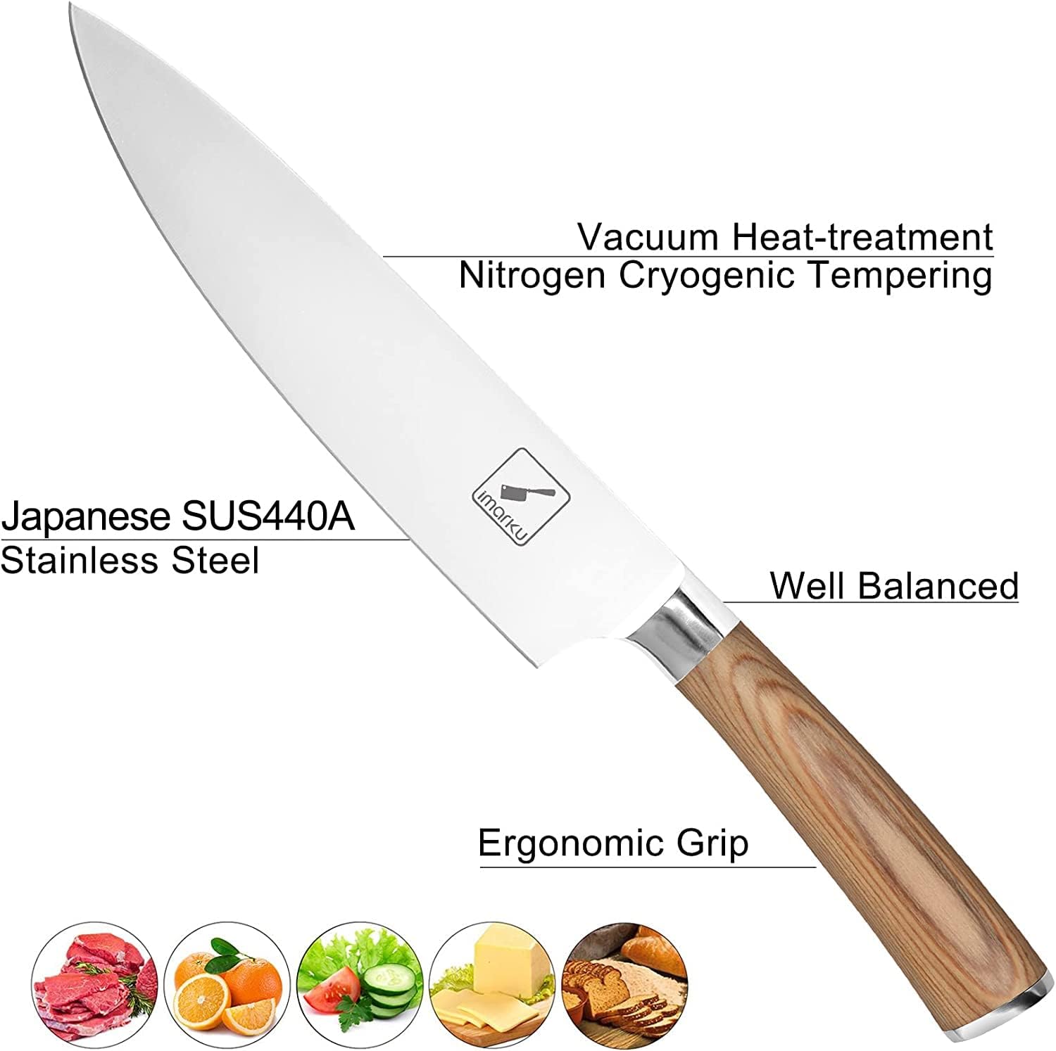 imarku Chef Knife - Pro Kitchen Knife 8 Inch Chef's Knives Japanese SUS440A Stainless Steel Sharp Paring Knife with Ergonomic Handle, Golden handle, Best Gifts for Men and Women