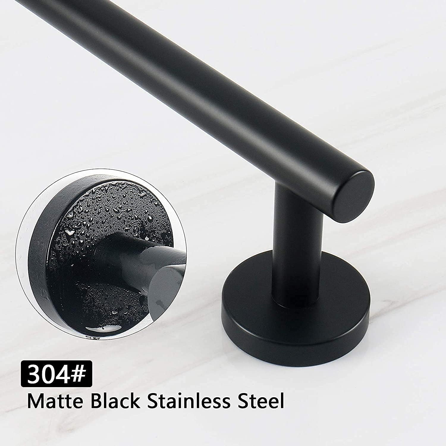 - 【RUSTPROOF High Quality】: The bathroom towel bar is constructed of Type 304 premium grade stainless steel, with added 18/10 Chromium/Nickel content to protect against corrosion & rust.4 protection layers are added on 304 stainless steel to make towel bar More durable and More Anti-Rust.bathroom towel holder sleek surfaces, no sharp edges, safely hangs bathrobe, bath towel, pants and shirt, swimsuits, coats, bags, shower caddy or other stuff.