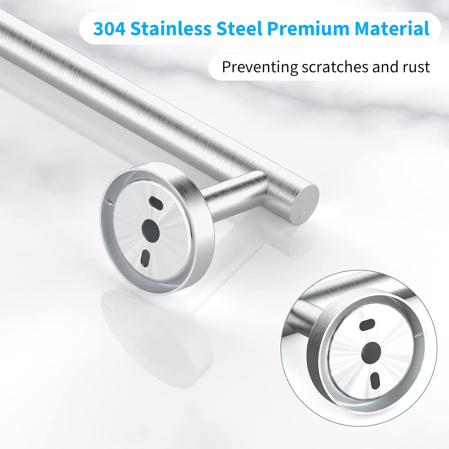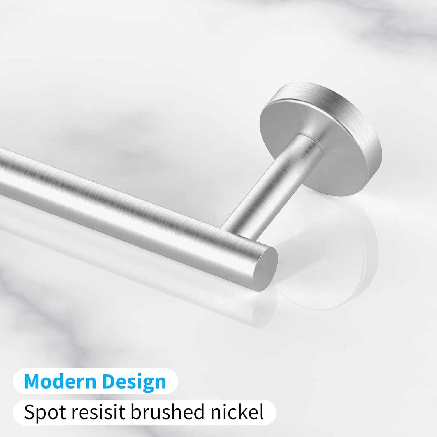 - 【Premium Material】 - Select premium SUS 304 stainless steel as raw material, solid, rust-free, more durability and reliability, can handle your bath towels without bending over.Modern towel bar delicate brushed nickel finish resists daily scratches, corrosion and tarnishing, always give the bathroom a fresh look.
