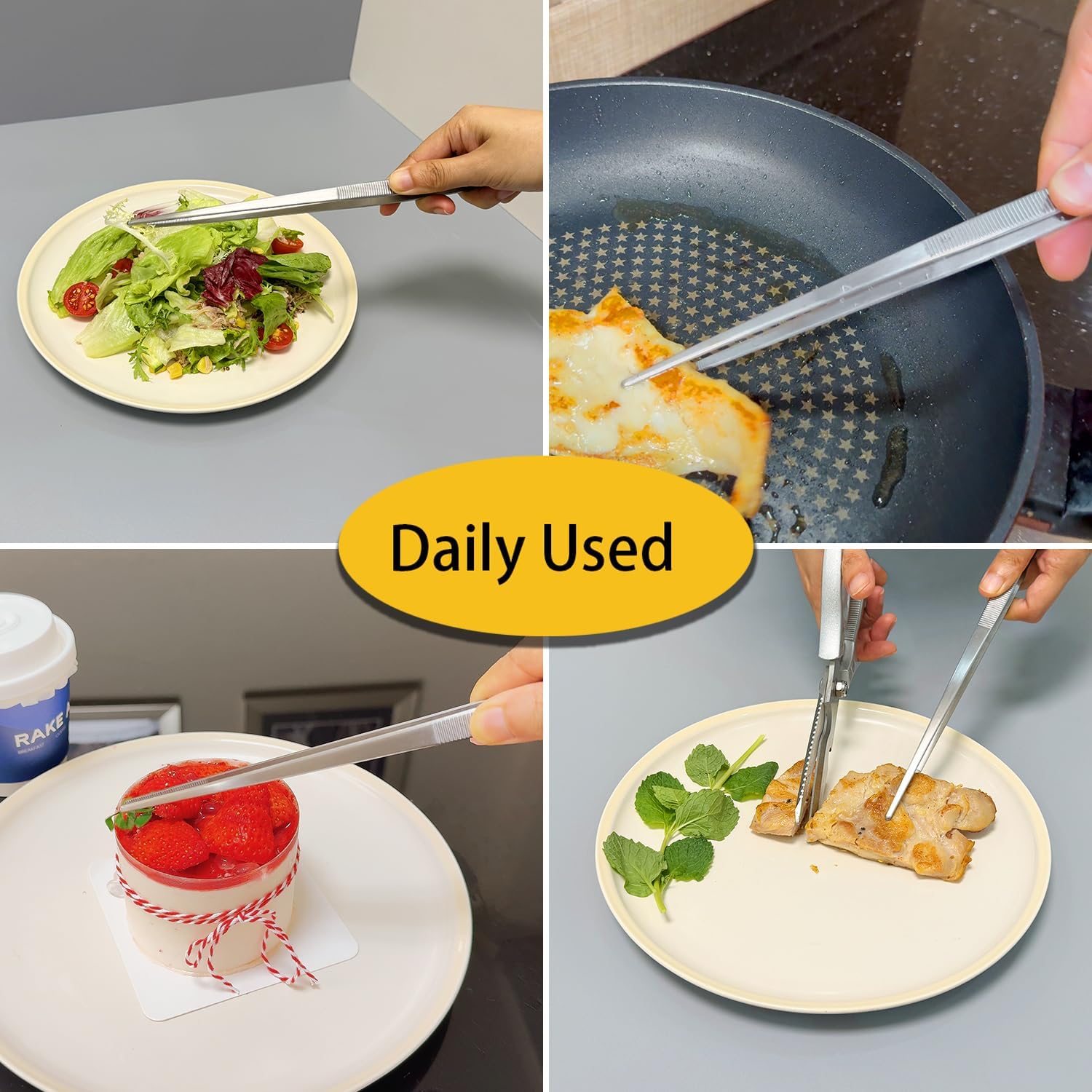 - PROFESSIONAL CHEF QUALITY MATERIAL - Our kitchen tweezers are manufactured from high quality stainless steel, have good rust and heat resistance. They are durability and reusable which have a smooth surface can avoid food residue, lightweight and easy to handle!