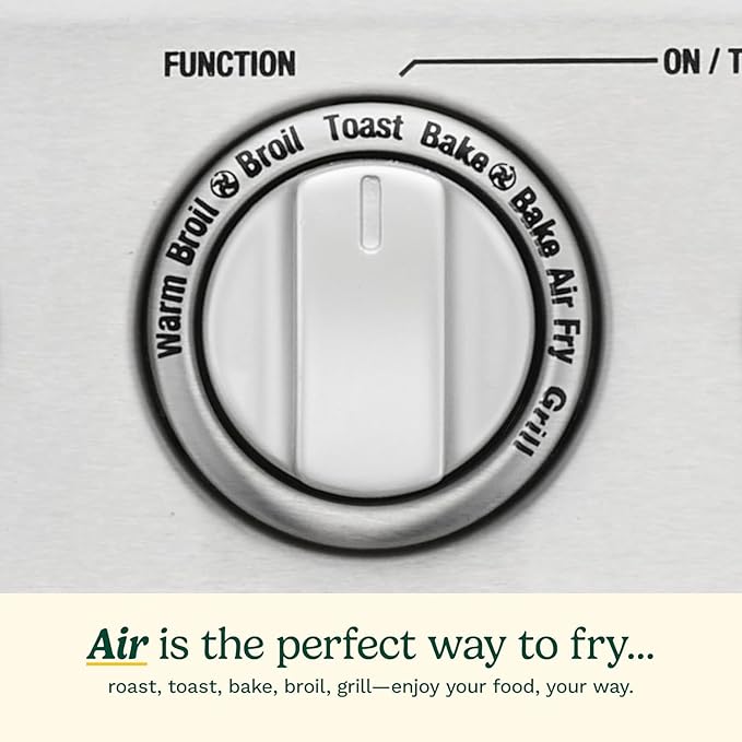 - SUPERIOR OPERATION: Equipped with an adjustable temperature dial, 60-minute timer/auto-shutoff, and a toast shade selector, this air fryer toaster oven features a wide temperature range (Warm-450°F) to ensure your meals are cooked to your perfection