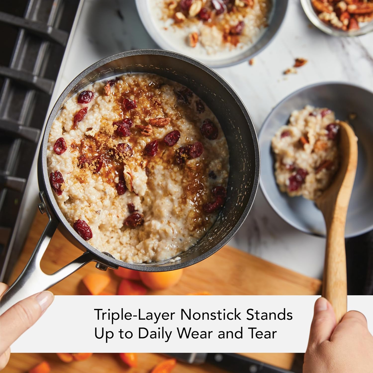 - EVEN, CONSISTENT HEAT: Saucepan is equipped with a thick, forged base designed to heat evenly for experimenting with new recipes and getting beautifully browned results on any stovetop