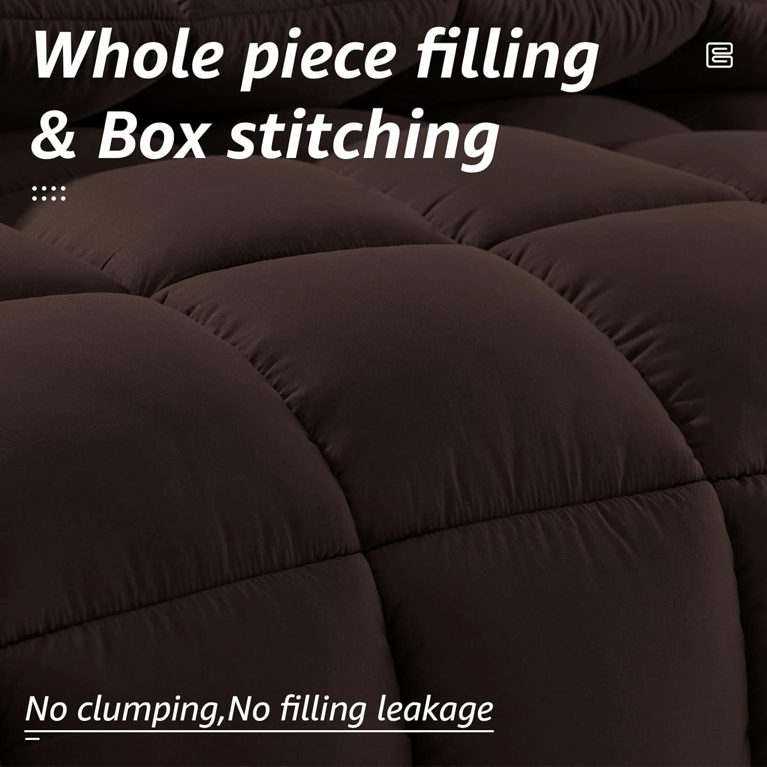 HYLEORY All Season Full Size Bed Comforter - Cooling Down Alternative Quilted Duvet Insert with Corner Tabs - Winter Warm - Machine Washable - Brown