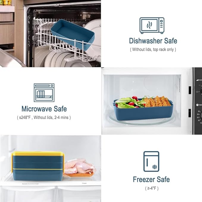 - 【Healthy Material Bento Lunch Box】Made of high-density BPA-free, food-grade material, Eco-friendly bento lunch box to stay mindful of your carbon footprint, and abide by a healthier lifestyle. PLUS, upgraded craftsmanship, real heavy-duty.