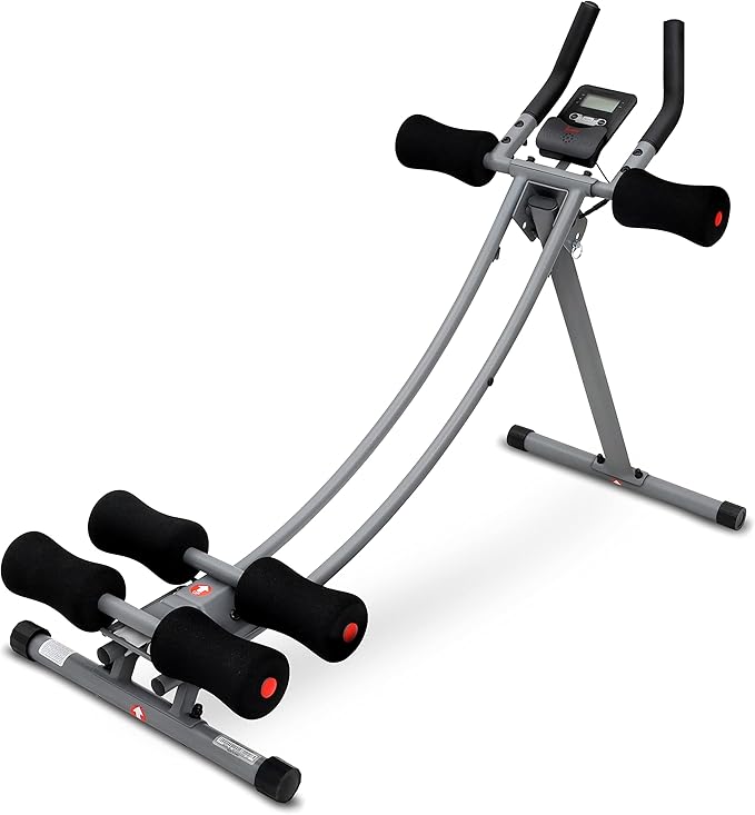 Sunny Health & Fitness Waist Trainer Ab Roller with Elbow Support, Training Wheels, Foldable for Home Gym, Abdominal Exercises, Core Strength, Glute Trainer, Crunch Workouts with Optional Dip Station