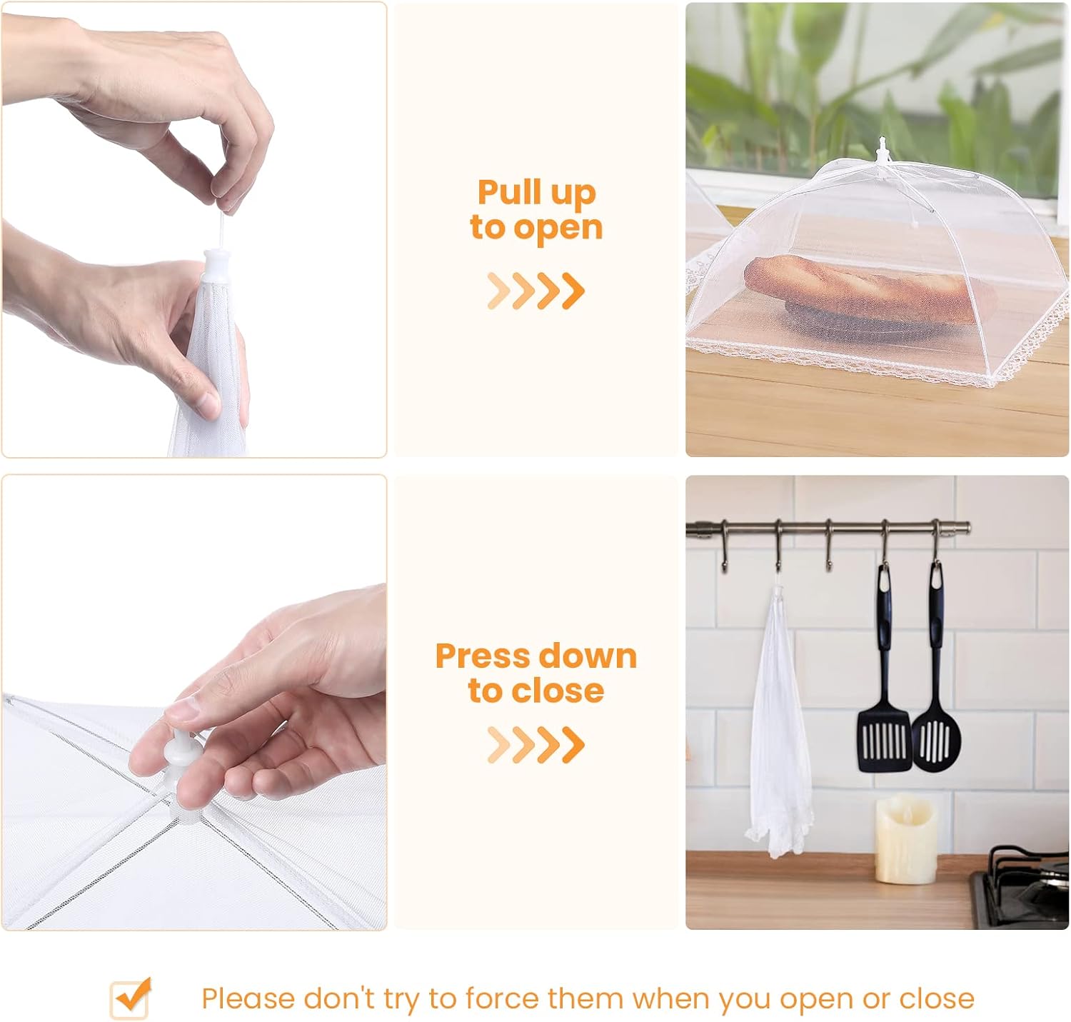 - ❤【Easy to Use & Clean】: Our food covers for outdoors mesh screen are very easy to open and close, just like an umbrella. Hand washable and easy to wipe clean. Please wash with soapy water and air dry if necessary.