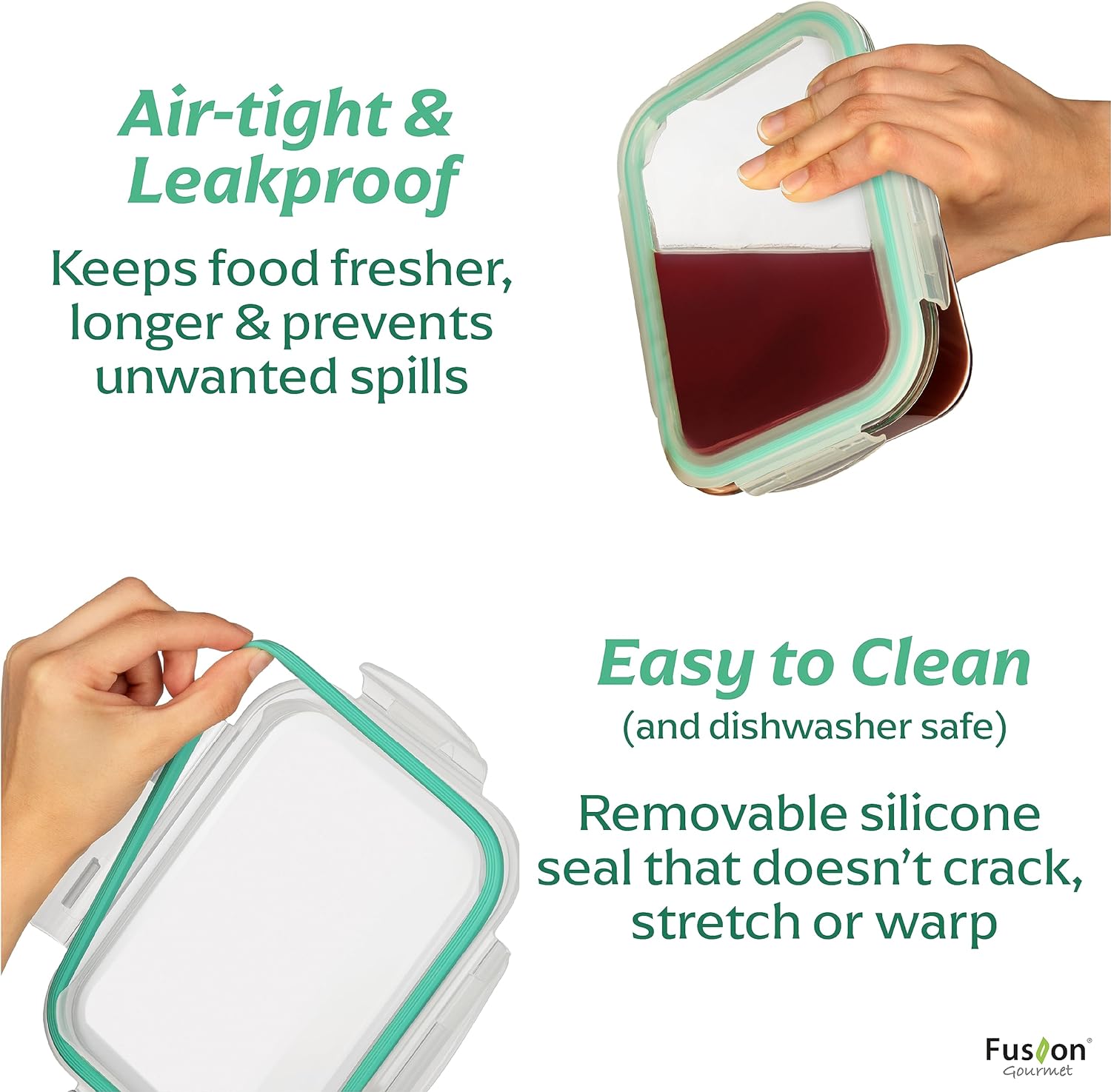 Fusion Gourmet 8 Pack 35 oz Glass Storage Containers with Lids - Airtight, Leakproof, Oven, Microwave & Freezer Safe, Stain & Odor Resistant, Reusable Meal Prep Containers (16-Piece)