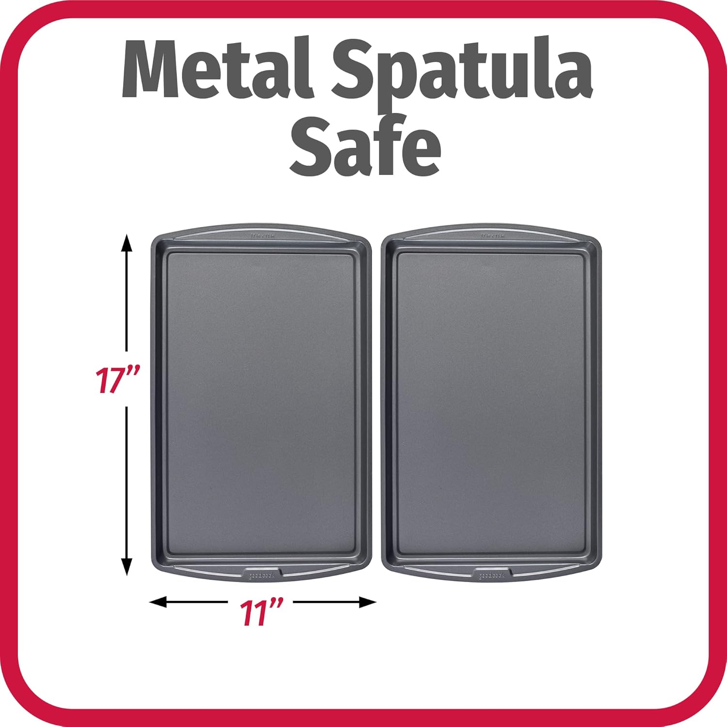- SET OF 2 BAKING SHEETS: GoodCook’s Nonstick Cookie Sheet Set comes with two 17” x 11” baking sheets to bake your favorite recipes from cookies, desserts, and tasty sheet pan dinners.