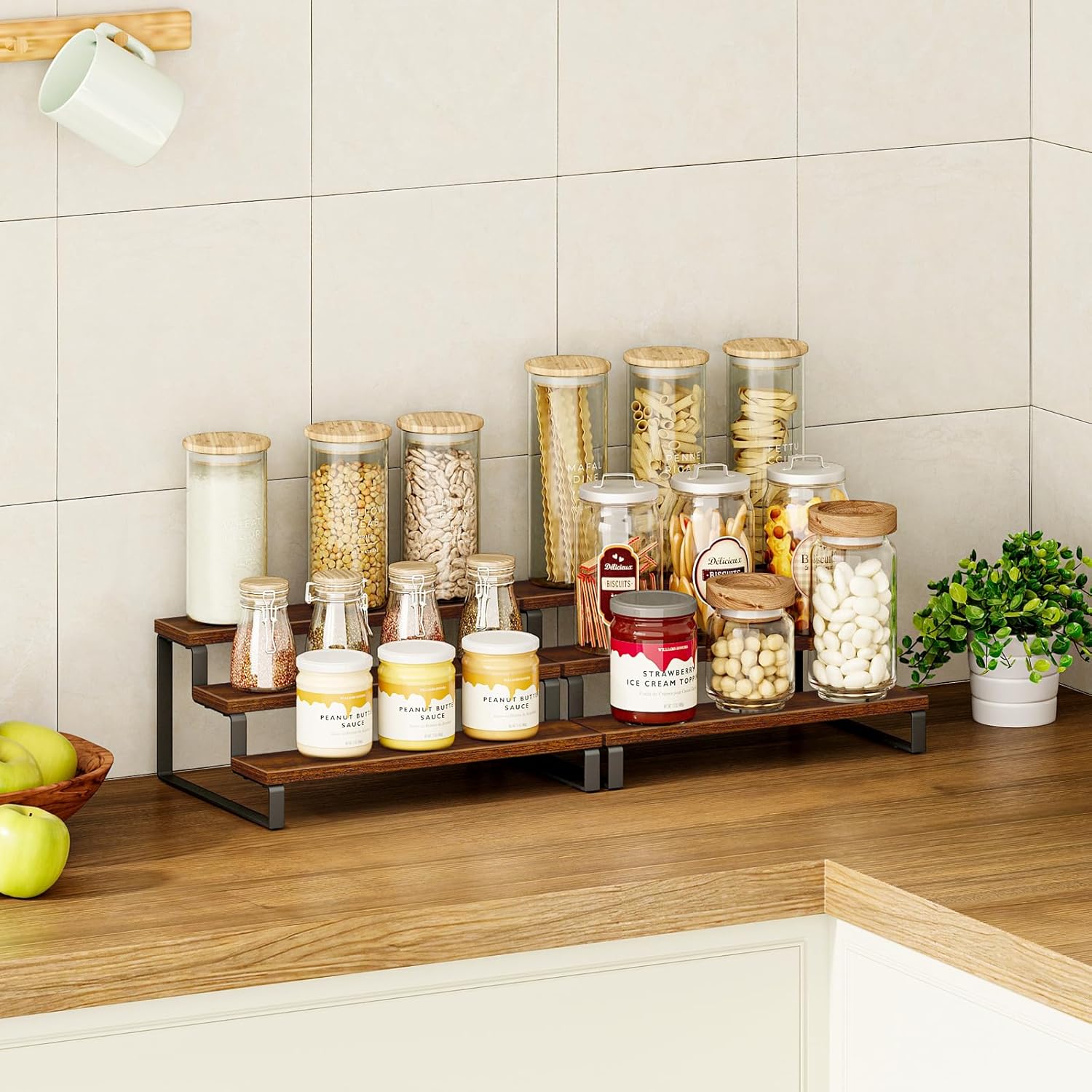 - Convenient Design: The size of this spice organizer: 13.8”L x 9.5”W x 6”H. The stepped design allows your spice bottles, jars, coffee syrup bottles, condiments and spices to be clearly classified and fully displayed, you can find them quickly when you need them while cooking, avoiding panic. It is a perfect holiday gift for Mother's Day and Father's Day!