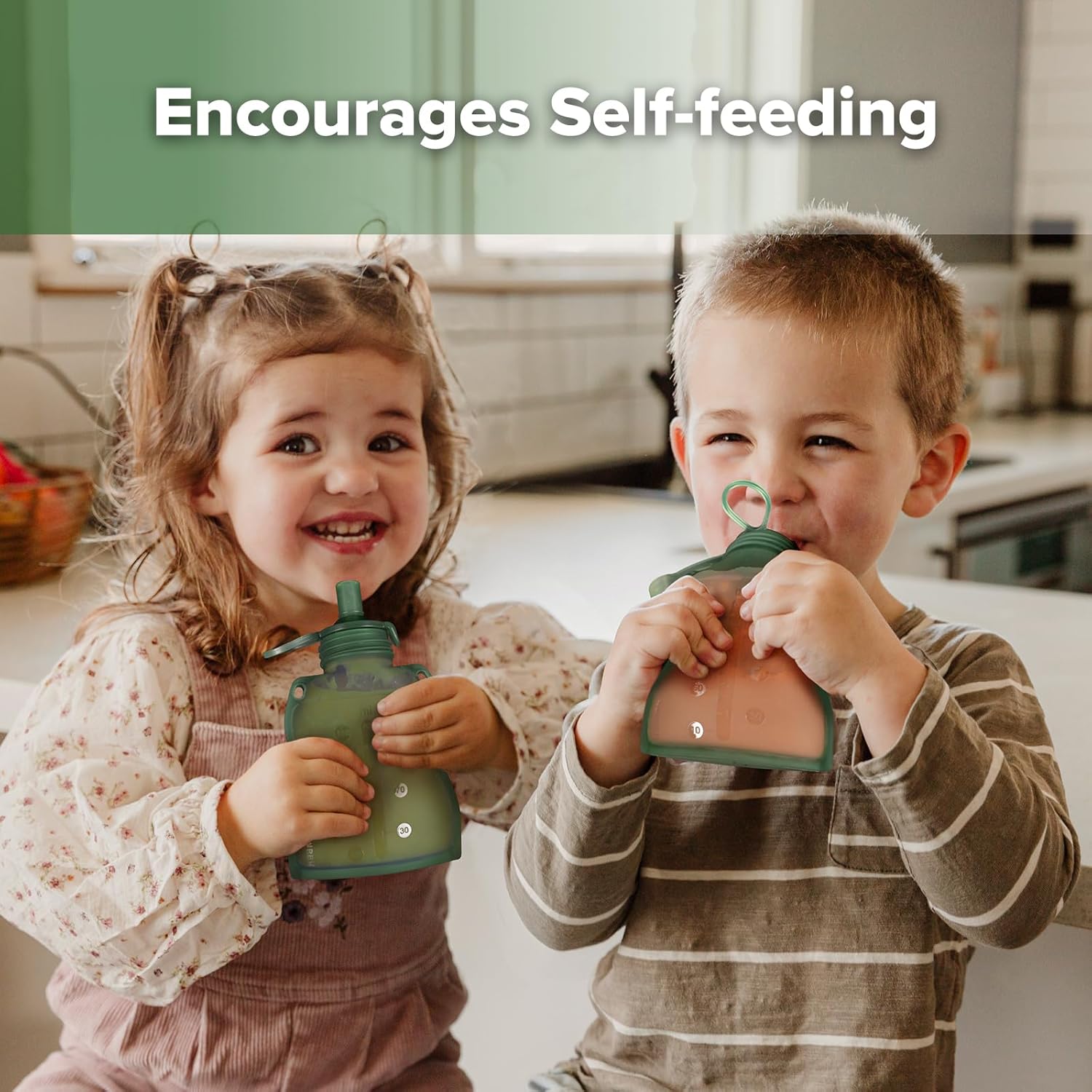- ππππππππππ ππππ -π ππππππ:Each of these reusable pouches for toddlers and babies includes a variable flow opening for safe, self-paced feeding. Soft silicone spout is gentle on mouths, easing the transition to solids.