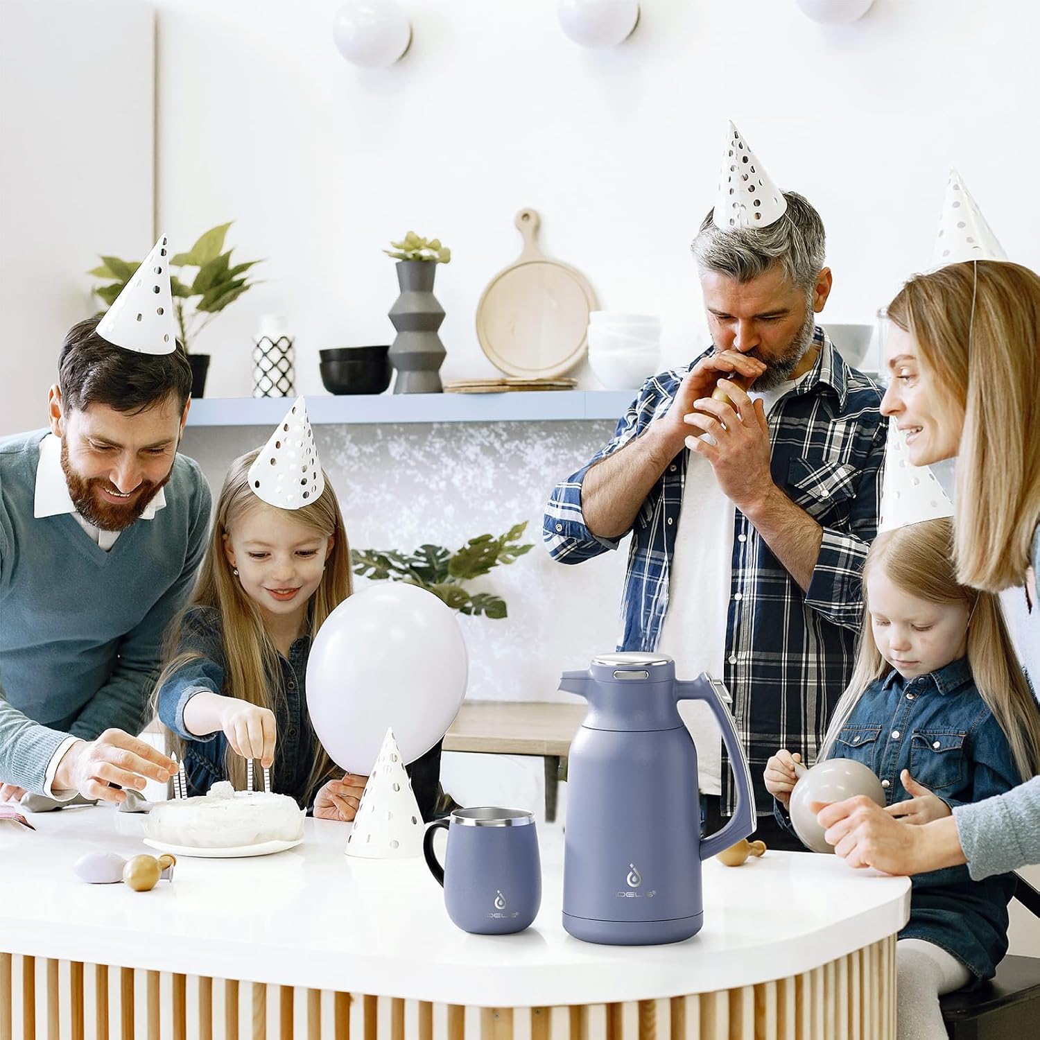 IDEUS Thermal Coffee Carafe 68oz (2,000ml), Stainless Steel Double Wall Insulated Vacuum Flask, Water Jug Coffee Server and Beverage Dispenser, Heat and Cold Retention (Ocean Blue, 68oz (2,000ml))