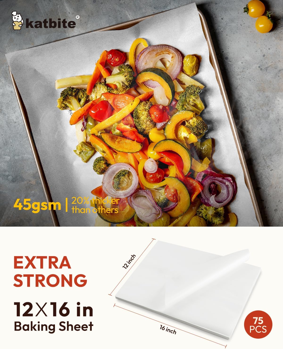 Katbite 75Pcs White Parchment Paper Sheets 12x16IN, Pre-Cut Heavy Duty Parchment Baking Paper, Non-Stick Half Sheet White Baking Parchment Paper for Air Fryer, Baking Cookie Pans[Advanced Series]
