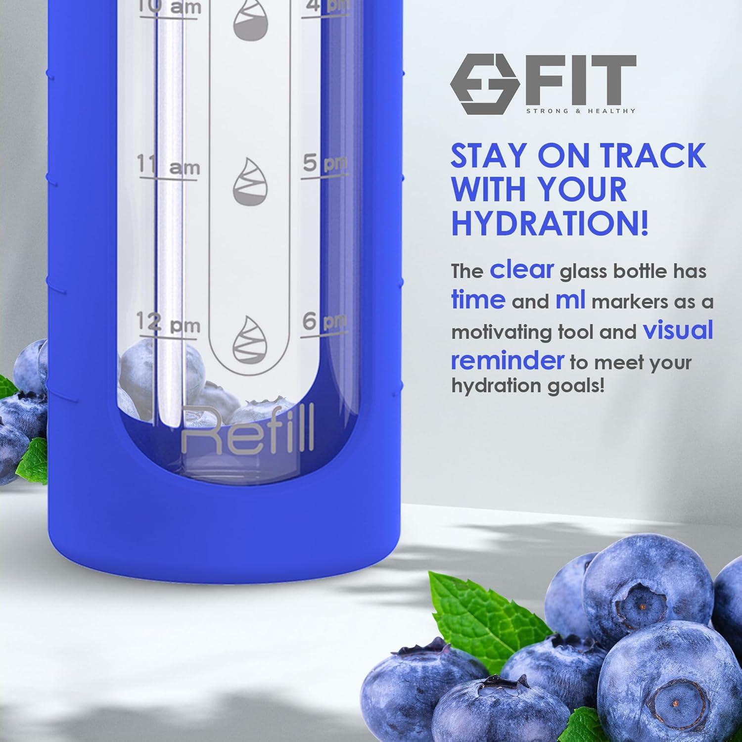 - Stay hydrated all day long: Say goodbye to constant refills; with just one refill in the afternoon, you can effortlessly achieve your daily water intake target whether you're at the gym, in the office, or at home; our large glass water bottle has time marks and ml measurements printed directly on the bottle, helping you stay on track with your water intake; it is leakproof, reusable, and makes an excellent gift for wellness-oriented individuals and fitness enthusiasts of all genders
