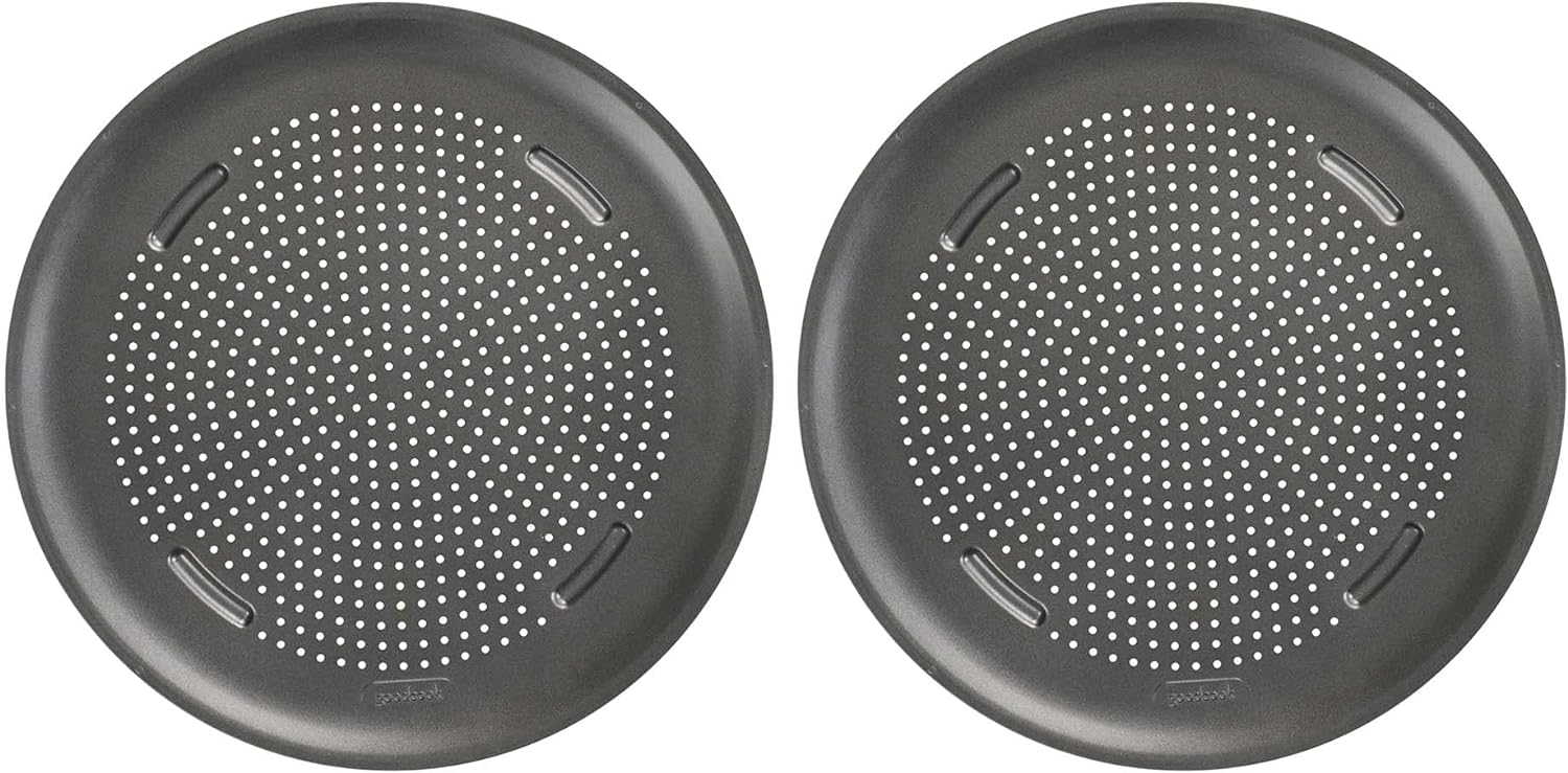 GoodCook AirPerfect Nonstick 16” Pizza Pan - Set of 2 - Pizza Trays for Oven, Perforated Round Pizza Pan, Carbon Steel Baking Pan, Homemade, Frozen & Leftover Slices