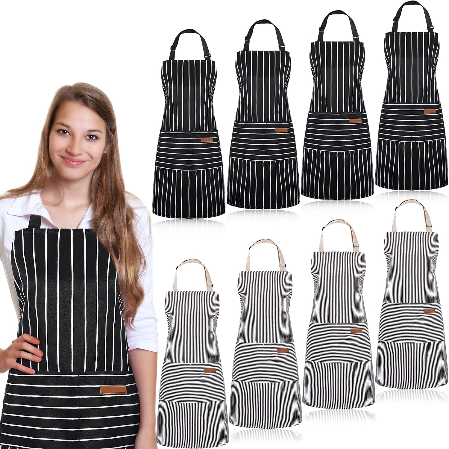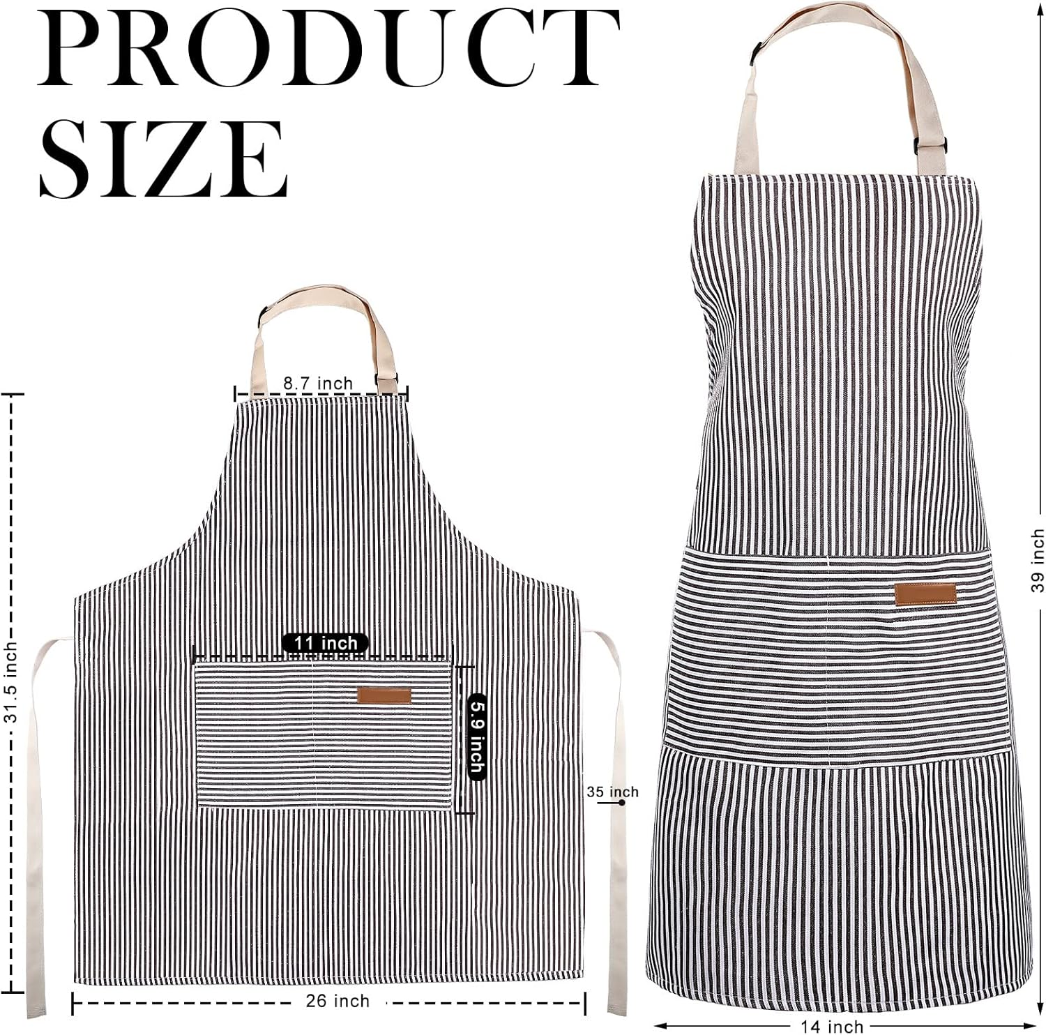 - Ample Quantity: you will get 8 pieces of aprons for men women with 2 different colors, grey stripes and black stripes, 4 pieces for each design; Sufficient quantity meet your various uses and replacements