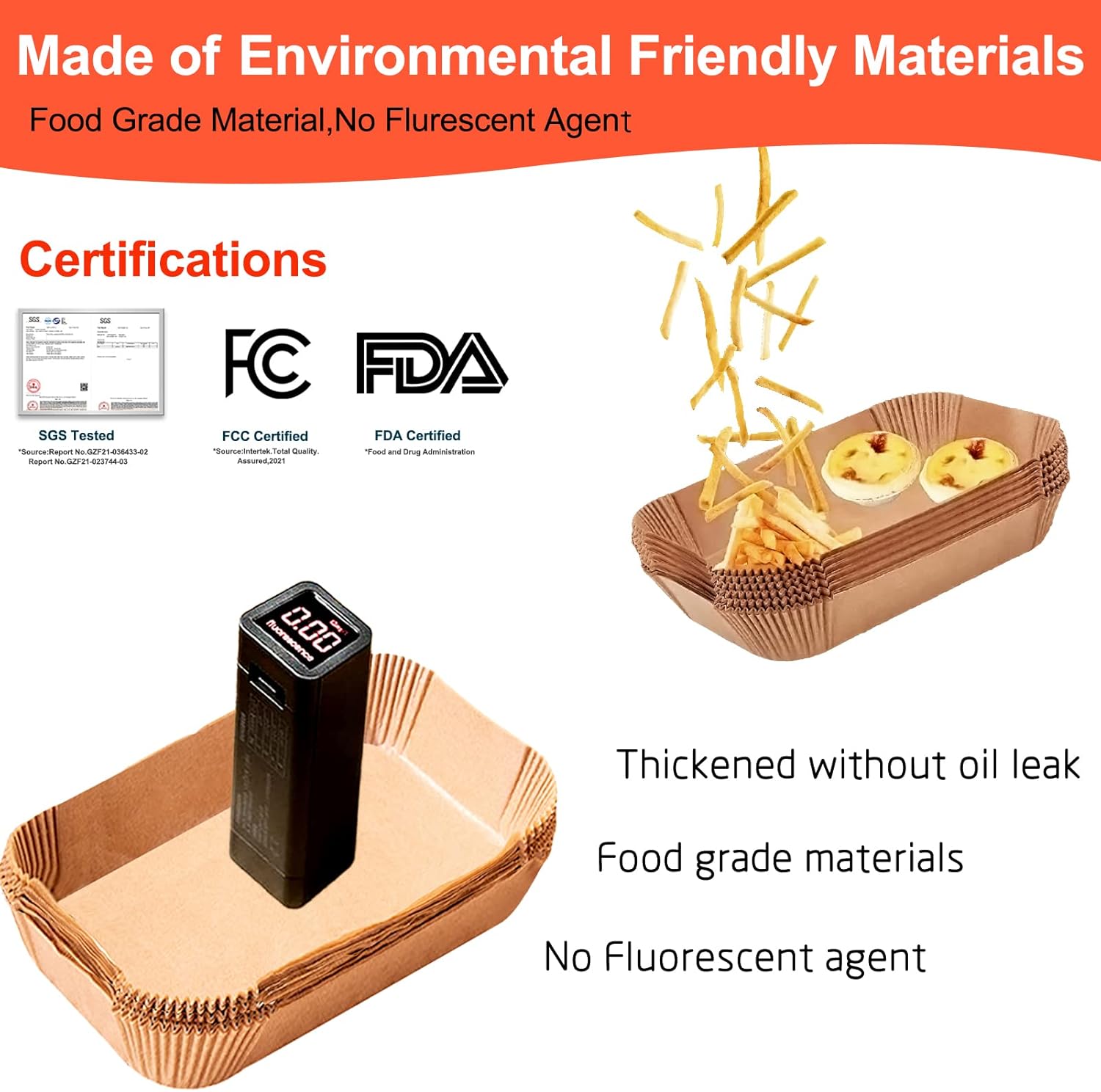 - 【Easy to Use】These non-stick air fryer disposable paper liner are designed with a rectangle bowl shape, which do not need to tear, fold, cut, nor bend, and you can directly put it in when you are ready to cook.