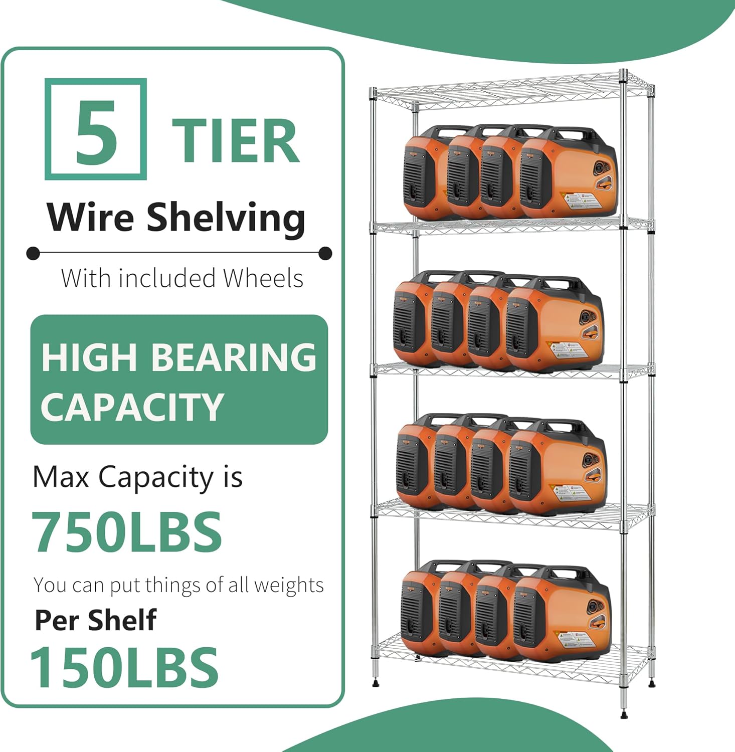 FDW 24" L×14" W×60" H Wire Shelving Unit Metal Shelf with 5 Tier Layer Rack Strong Steel for Restaurant Garage Pantry Kitchen Garage,Chrome