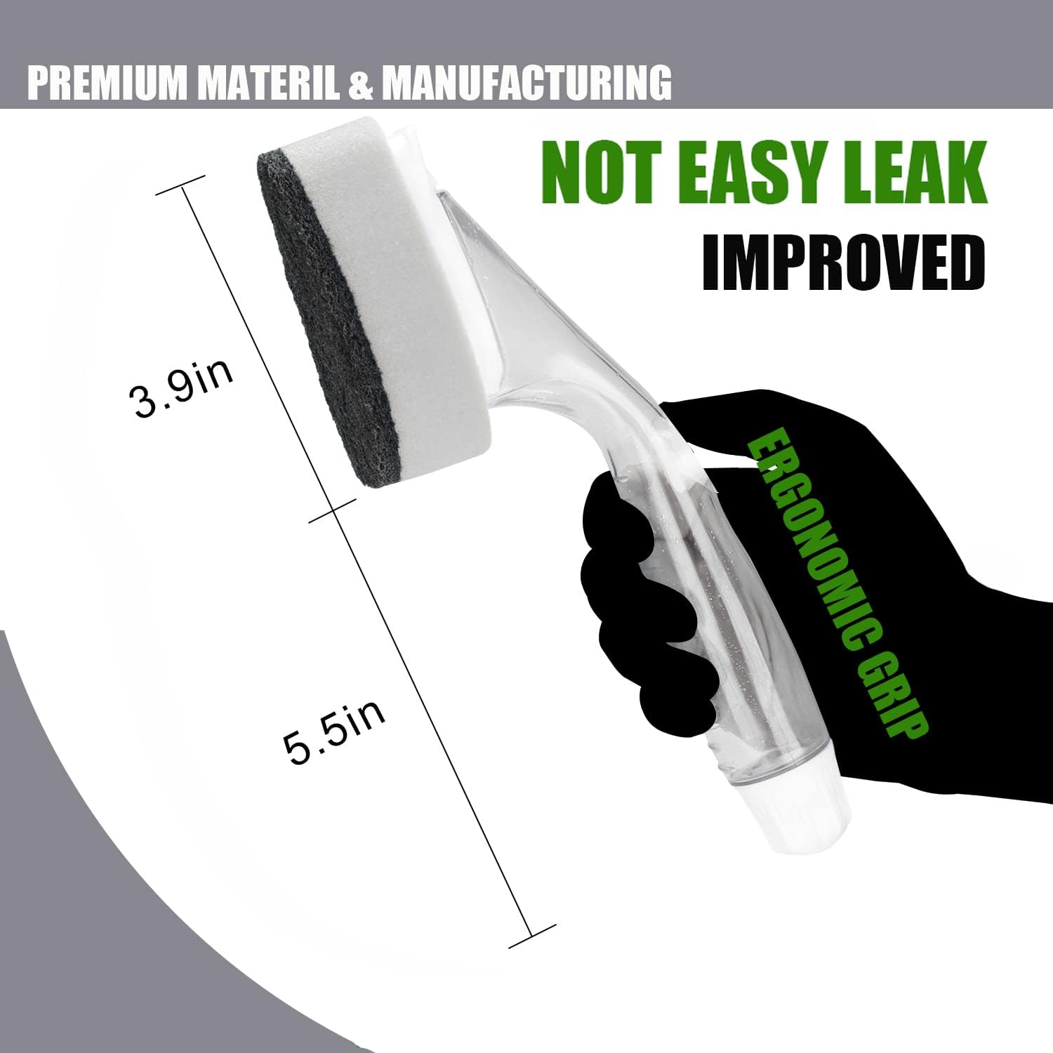 - WHAT WE IMPROVED: They made of much more durable and thickness scrubber material . Green dish scrubber ,yellow sponge and plastic component are stronger and tight closer than others , don’t worry easy to fall apart.We improved the system of soap dispenser,press the sponge suck out soap automatically, without headache of leaking.