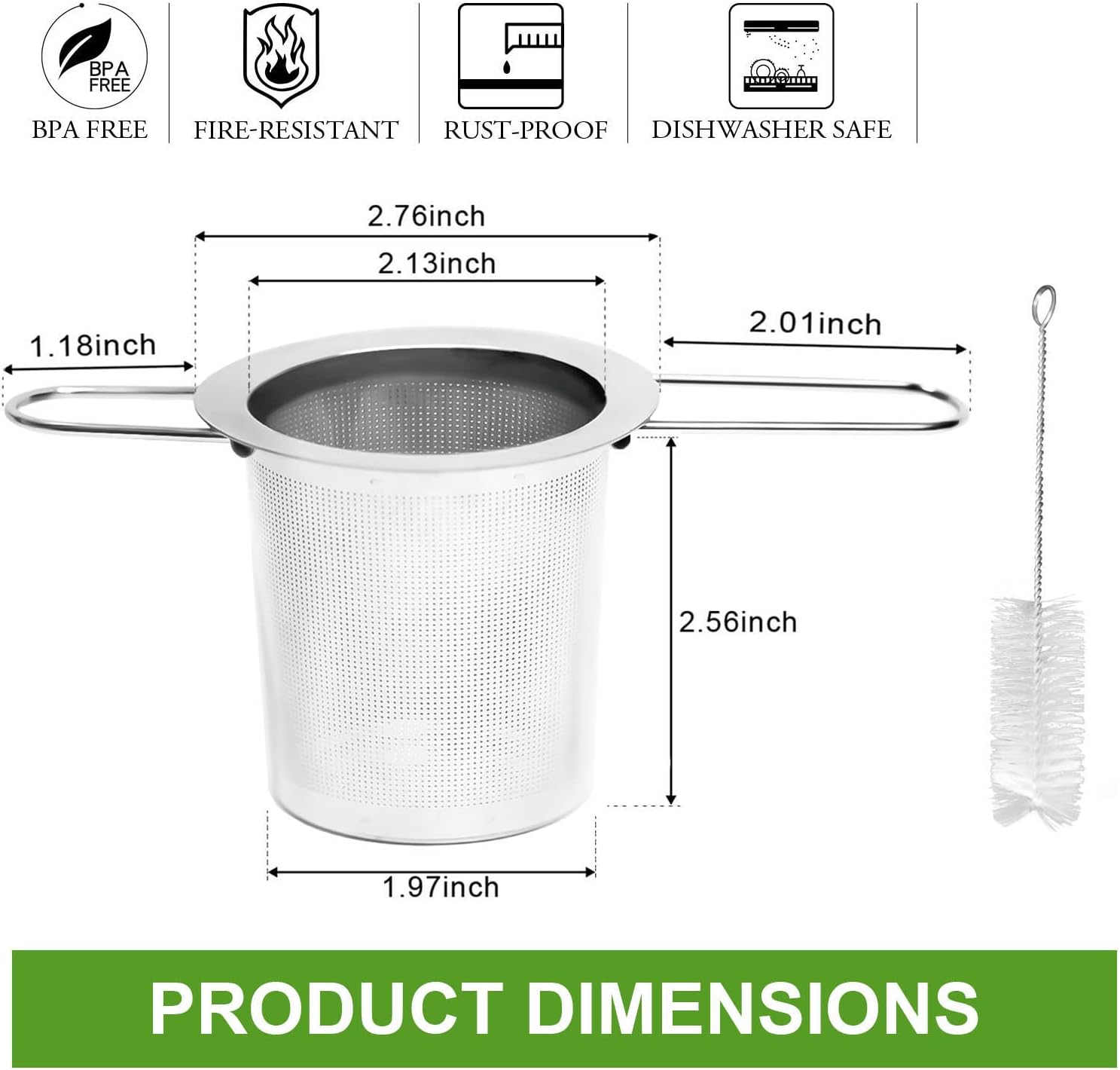 - 18/8 STAINLESS STEEL TEA STRAINER: Tea infusers for loose tea material is made of food grade 18/8 stainless steel (also known as 304 stainless steel) and without harmful chemicals. The tea diffuser is heat resistant, durable, rust-free and odor-free, and it is safer to soak in hot water than plastic. Tea steeper with long-handled, low thermal conductivity; dishwasher safe.