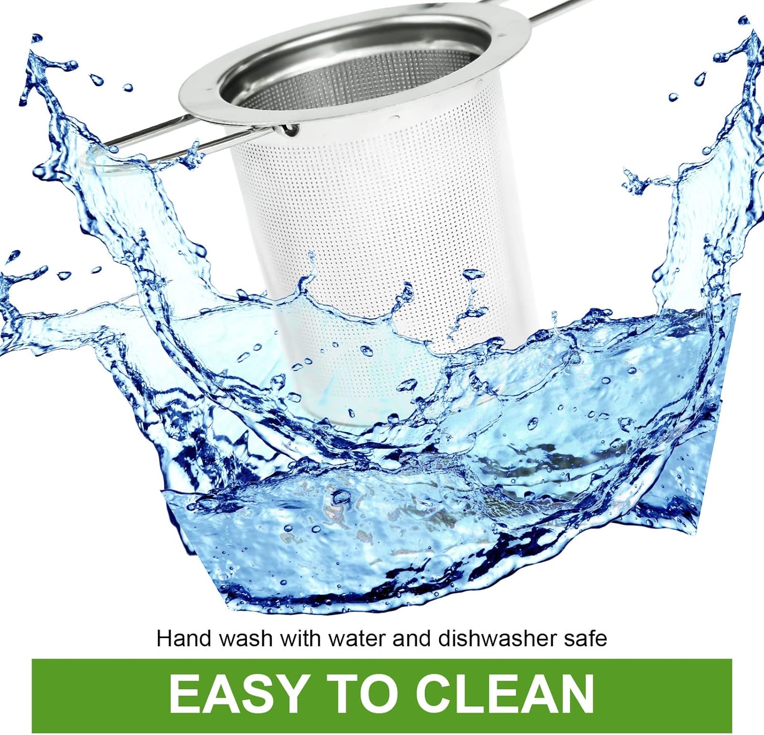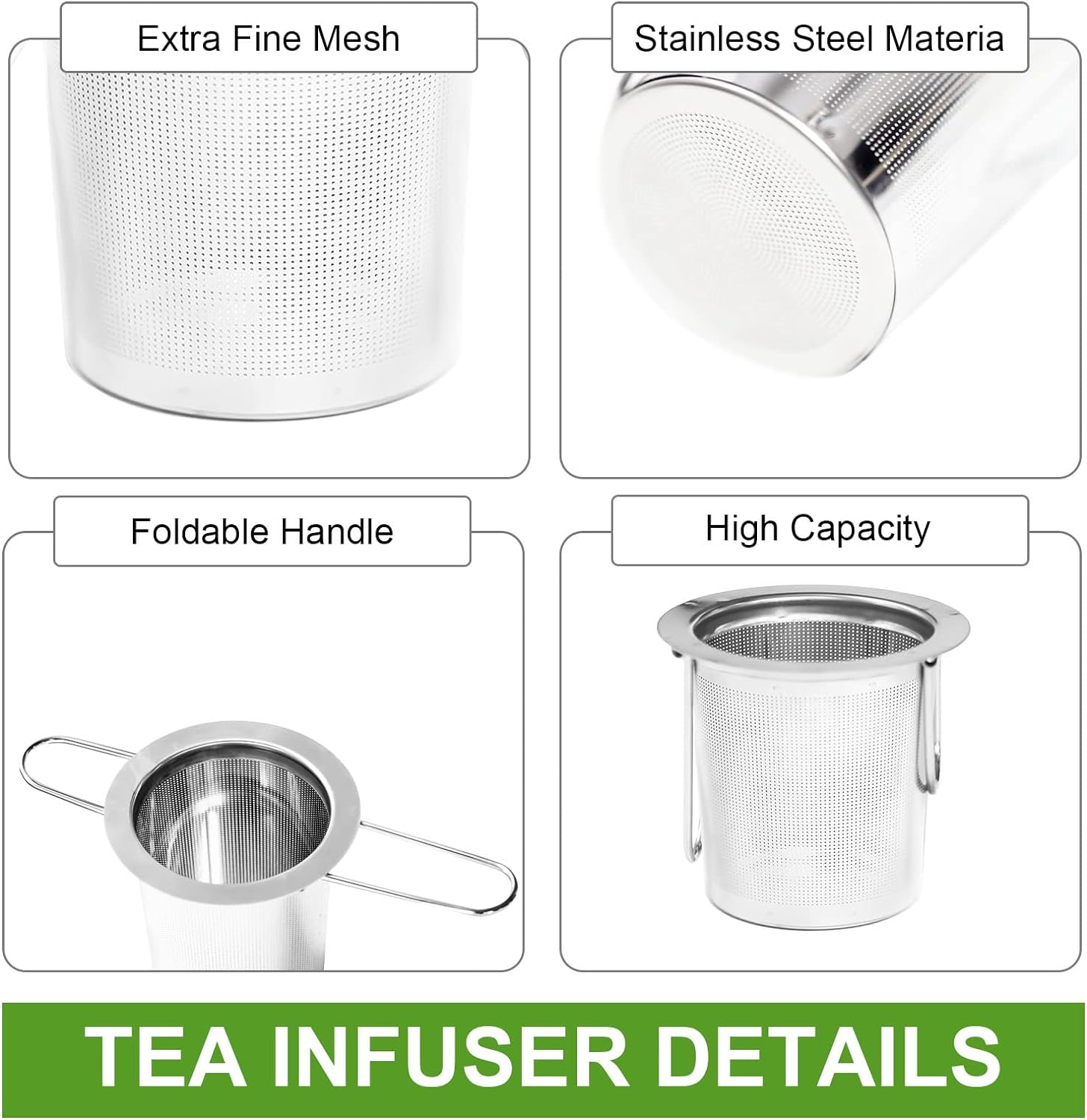 - EXTRA FINE MESH DESIGN: Tea strainers for loose tea consist of ultra-fine mesh; 6000 evenly distributed mesh holes with a diameter of about 0.007 inches that can easily block small tea leaves so that there are no tiny particles outside the tea strainer; Let loose leaf tea in hot water, rapid and sufficient expansion without affecting the aroma of the tea; It can be used to filter black tea, rooibos tea, green tea, scented tea, etc.