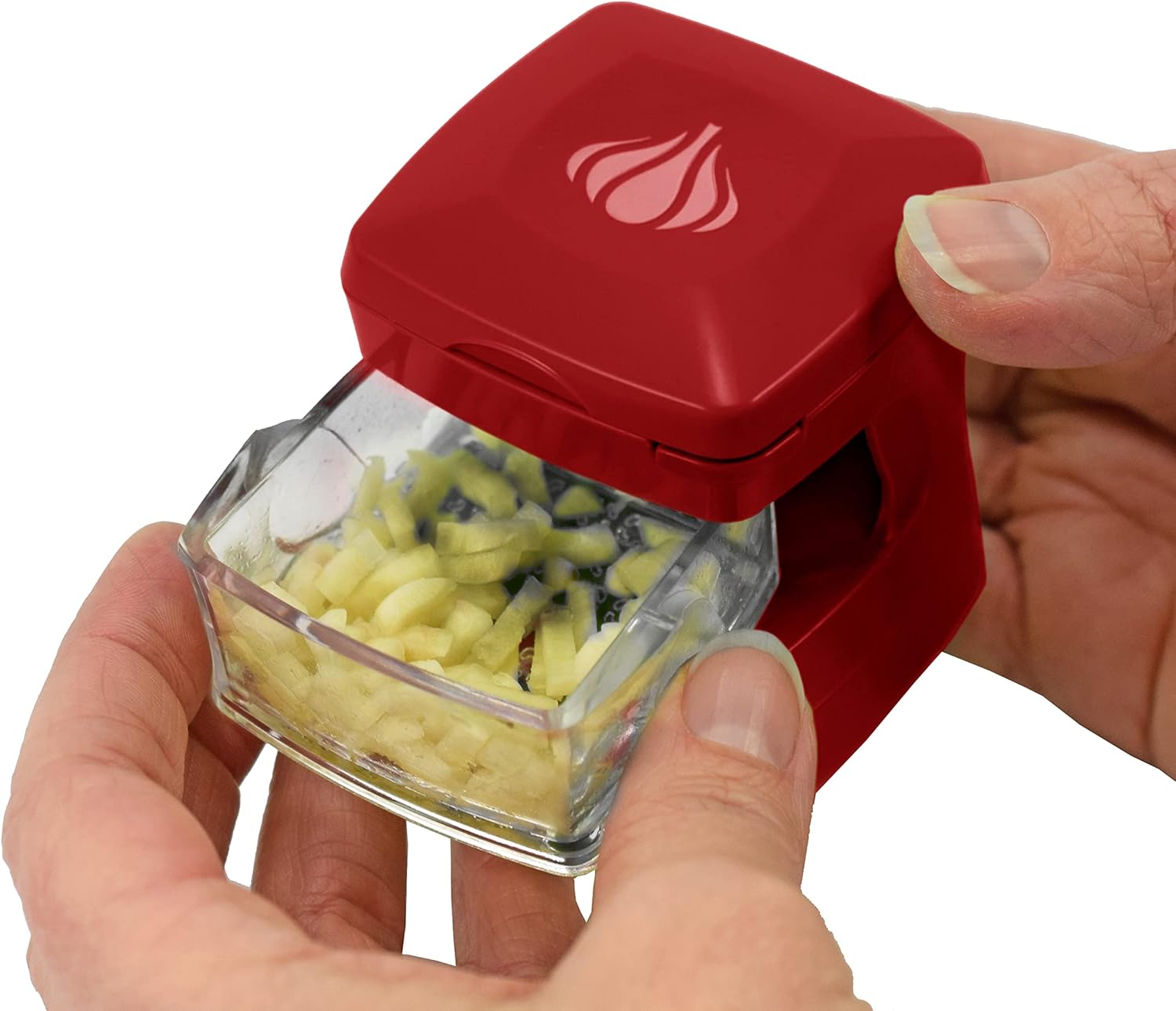 - Leaves no odour on hands; Use the silicone peeler to peel garlic, then simply add garlic in between the top and selected blade, then push down; Clear container catches crushed garlic and allows for easy transfer directly to any dish or recipe