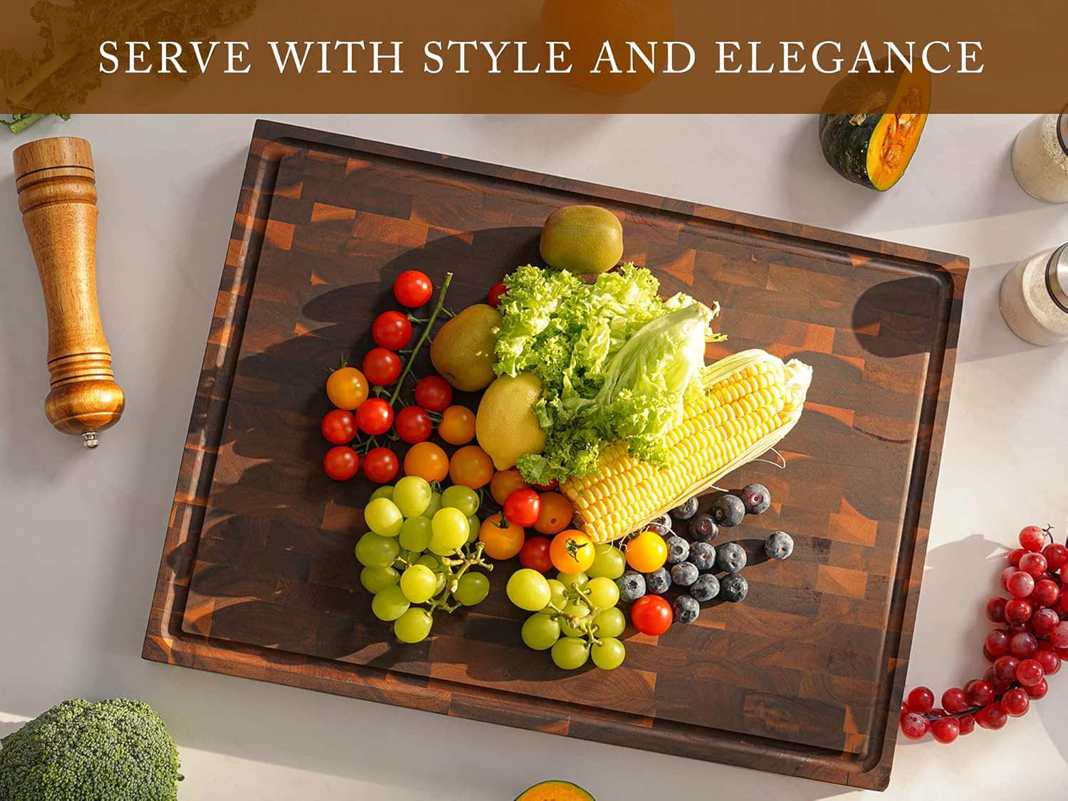 - SUPERIOR END-GRAIN CONSTRUCTION - brings more benefits compared to others. They are somewhat “self-healing” because wood fibers bounce back into place after chopping. The cost is higher. But if you enjoy cooking, an end grain board is worth the investment. With a little care and regular maintenance, your cutting board can be handed down for generations to come