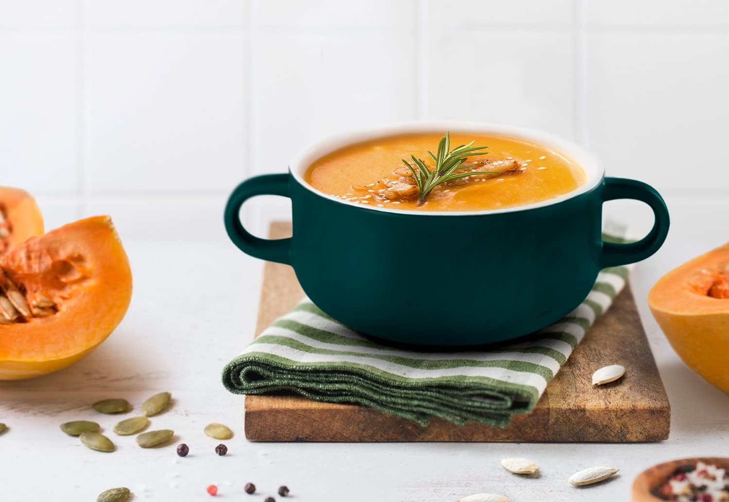Kook Soup Crocks, Ceramic Bowls, Broil, Oven, Microwave and Dishwasher Safe, with Handles, For Casserole, Pasta, Cereal, 18 oz, Set of 4 (Hunter Green)