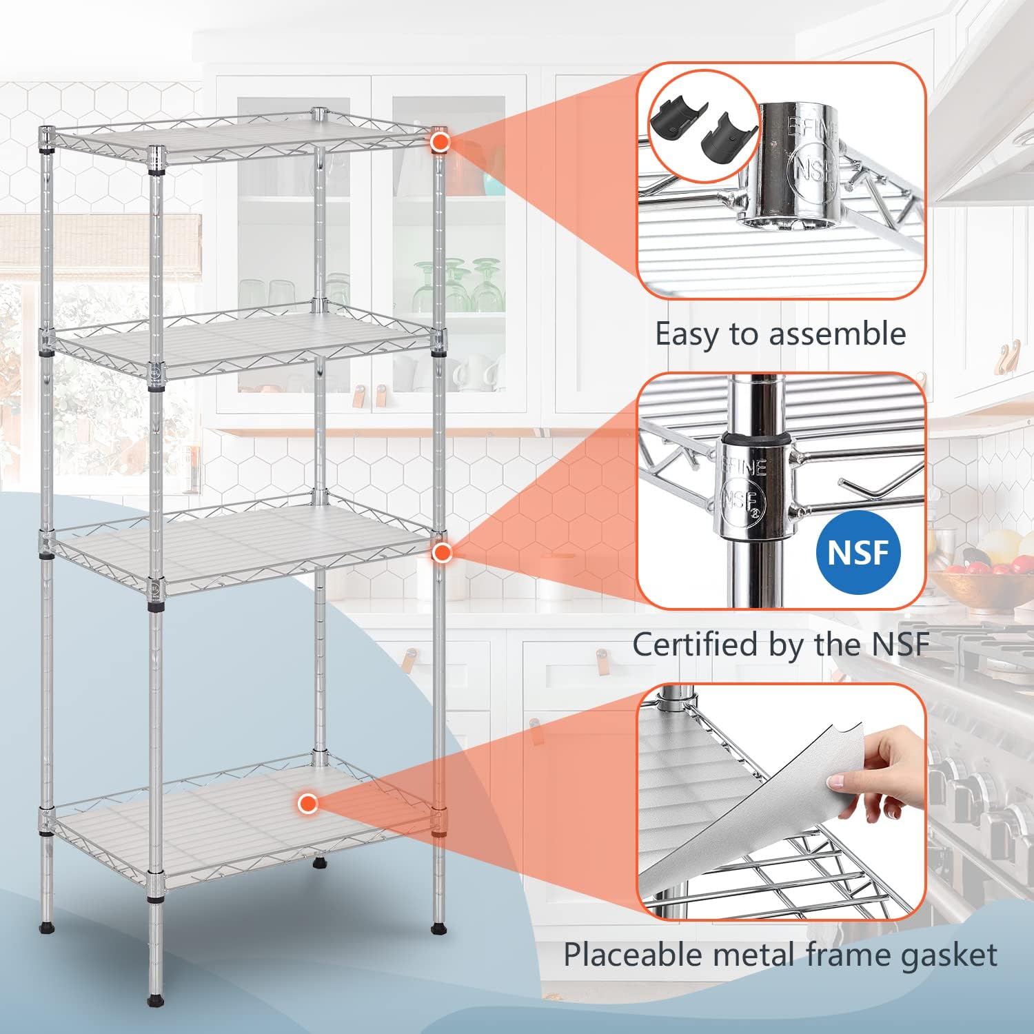 FDW 18L x 12W x 44H Wire Shelves with 4 PP Sheets Metal Shelf Storage Shelves 4 Tier Layer Storage Shelves for Laundry Bathroom Kitchen Garage,Chrome