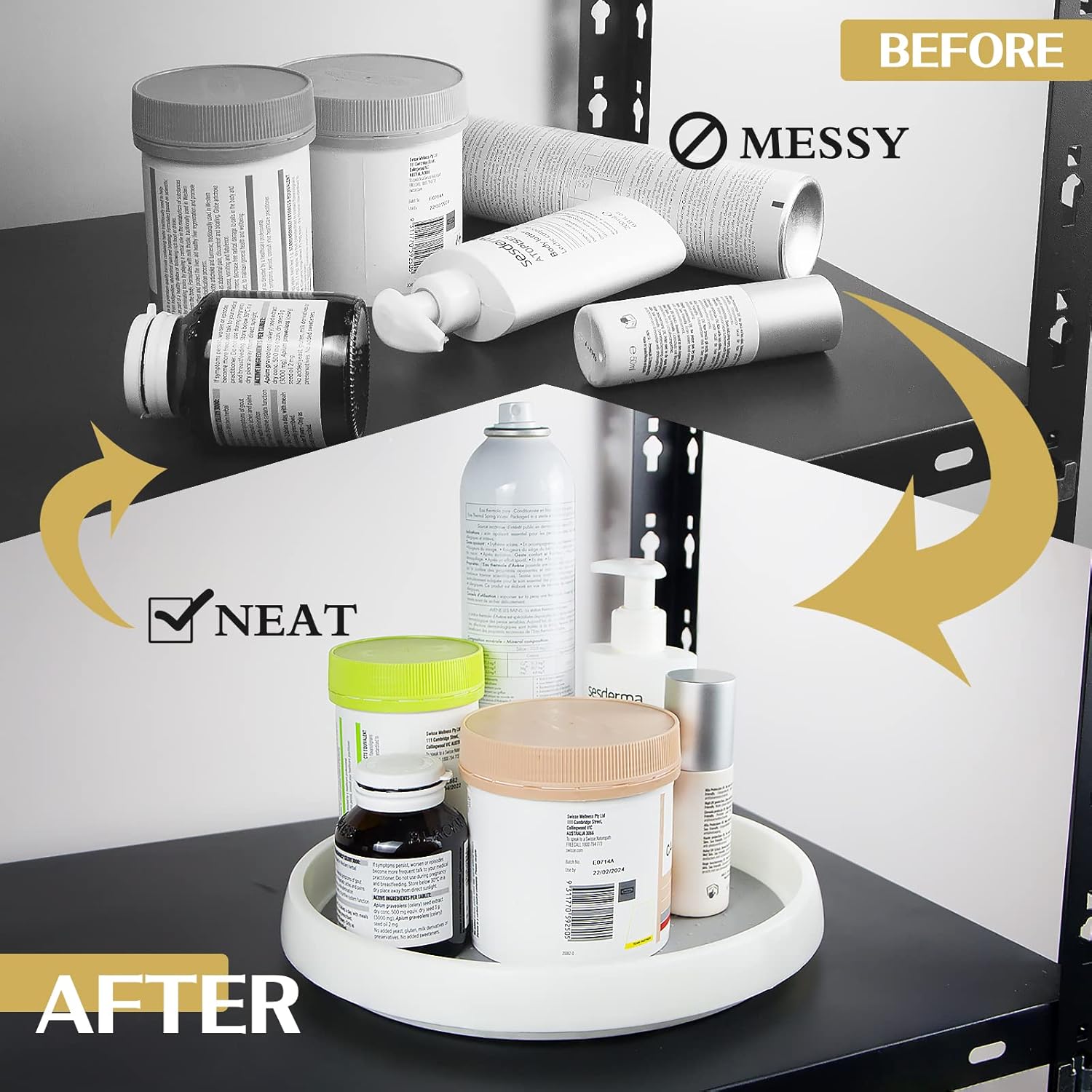 2Pack Non Skid Lazy Susan Turntable,Single Round Rotating Kitchen Spice Organizer for cabinets,Pantry, Bathroom, Refrigerator (10Inch+12Inch)