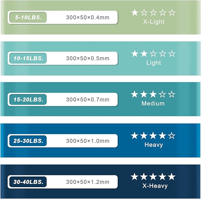 - 【5 Resistance Levels】 Resistance bands with 5 different levels of resistance. Can be used by all family members or to reach different training goals.