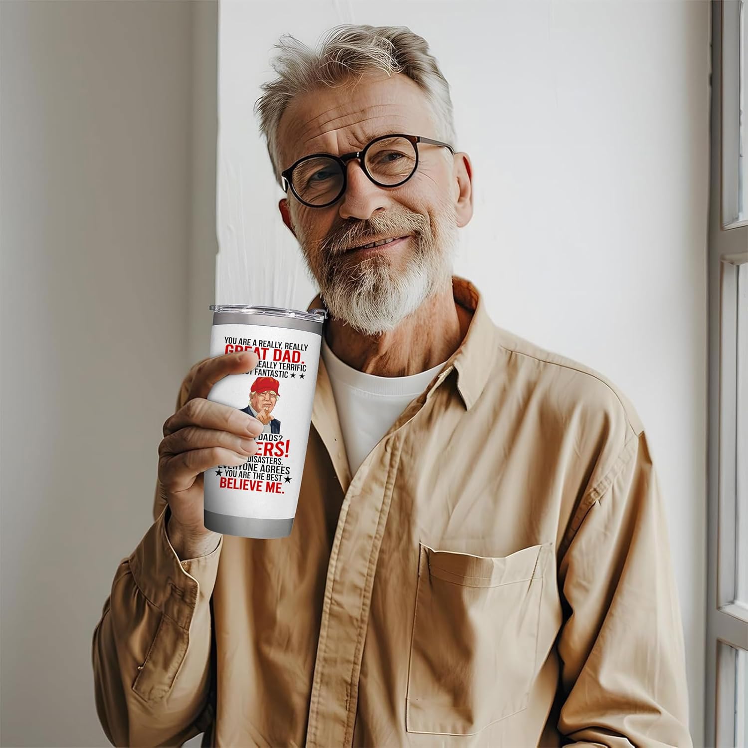 Father's Day Gifts for Dad from Daughter, Son, Wife - Dad Gifts for Fathers Day - Funny Present for Fathers on Birthday, Xmas - Insulated Stainless Steel Tumbler 20oz, White