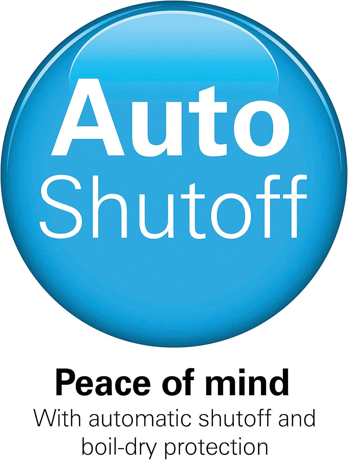 - Automatic shutoff for peace of mind. The automatic shutoff function turns the electric water kettle off when water comes to a boil and the boil-dry protection function keeps the electric teapot from scorching if the water level gets too low.