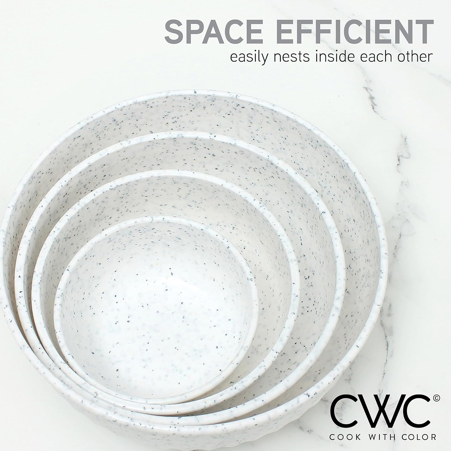 COOK WITH COLOR Prep Bowls with Lids- Wide and Deep Nesting Plastic Small Mixing Bowl Set with Lids, 8 Piece Set - Wide Bowls, Speckled White