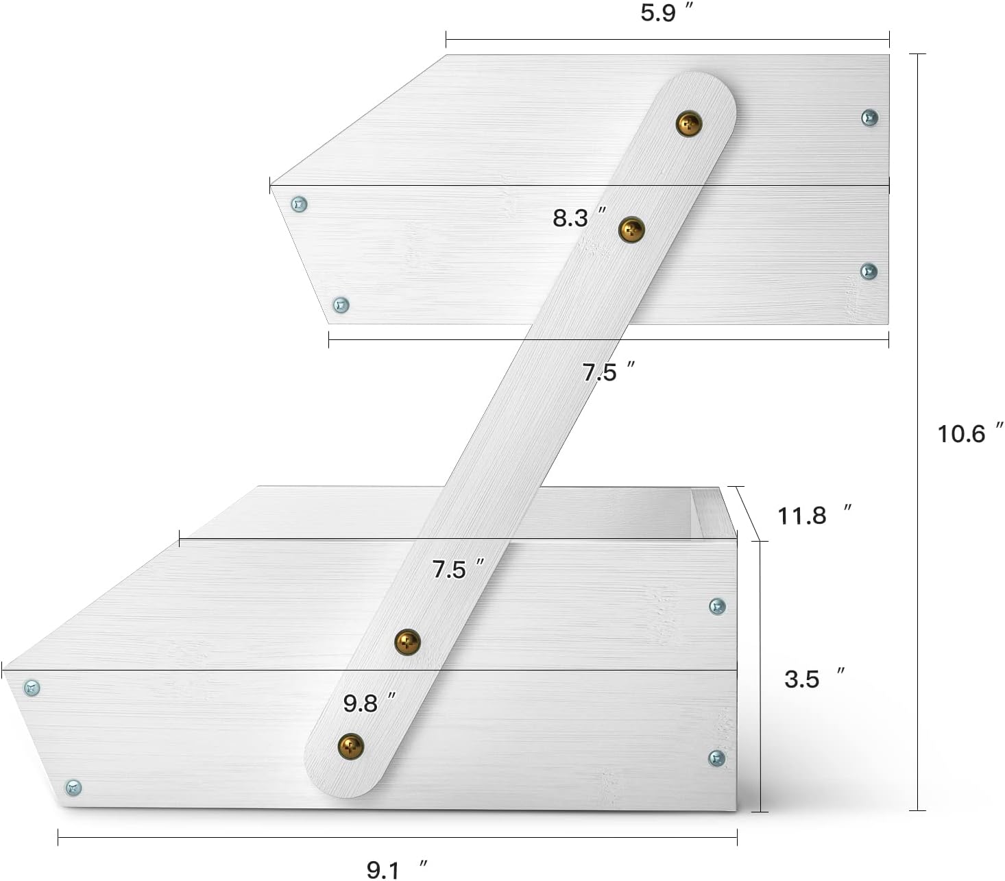 - Ideal Storage Basket: The two-tier fruit stand has a top fruit holder size of 11.8"L x 7.5"W and a bottom fruit stand size of 11.8"L x 9.1"W. It has a total height of 10.6 inches, making it an ideal storage solution for your fruits and vegetables. Its vintage and elegant dynamic style can meet most decoration needs, making it a perfect gift or addition to any kitchen. Upgrade your kitchen organization with our bamboo fruit basket today!