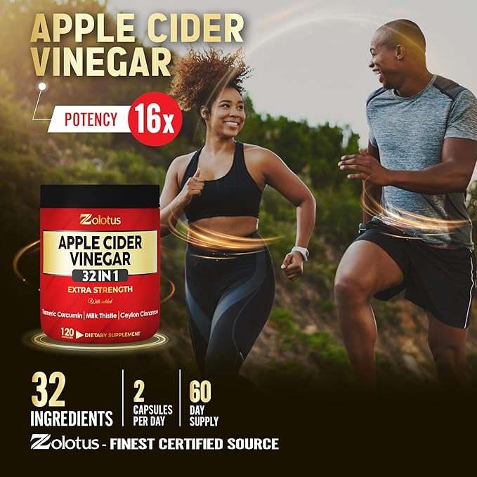 Zolotus 32 in 1 Apple Cider Vinegar Capsules with Turmeric, Cinnamon, Milk Thistle, Elderberry, Quercetin for Support Digestion, Immune 120 Capsules