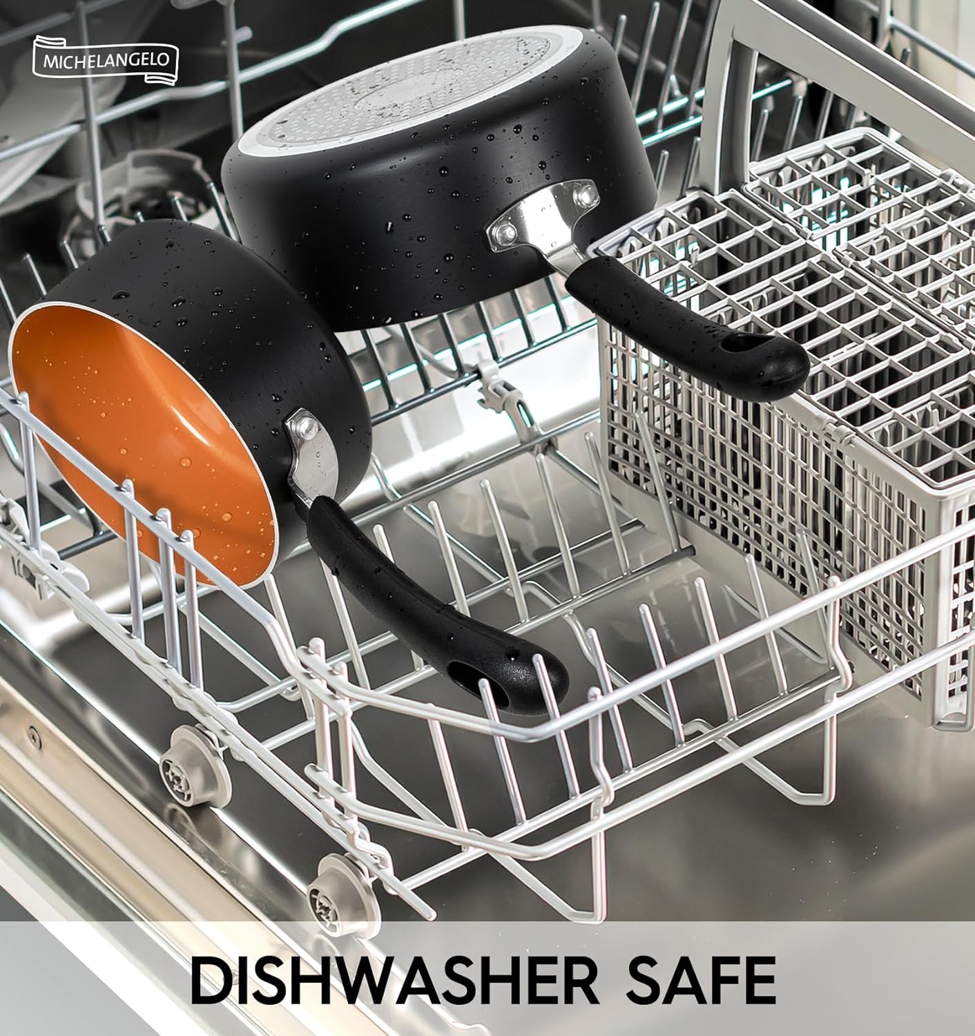 MICHELANGELO Nonstick Sauce Pan With Lid, 1QT&2QT Ceramic Saucepan, Copper Saucepans,PFAS-FREE Pot Set,Small Pots For Cooking,Multipurpose Cooking Pots Set For Home Kitchen,Dishwasher Safe