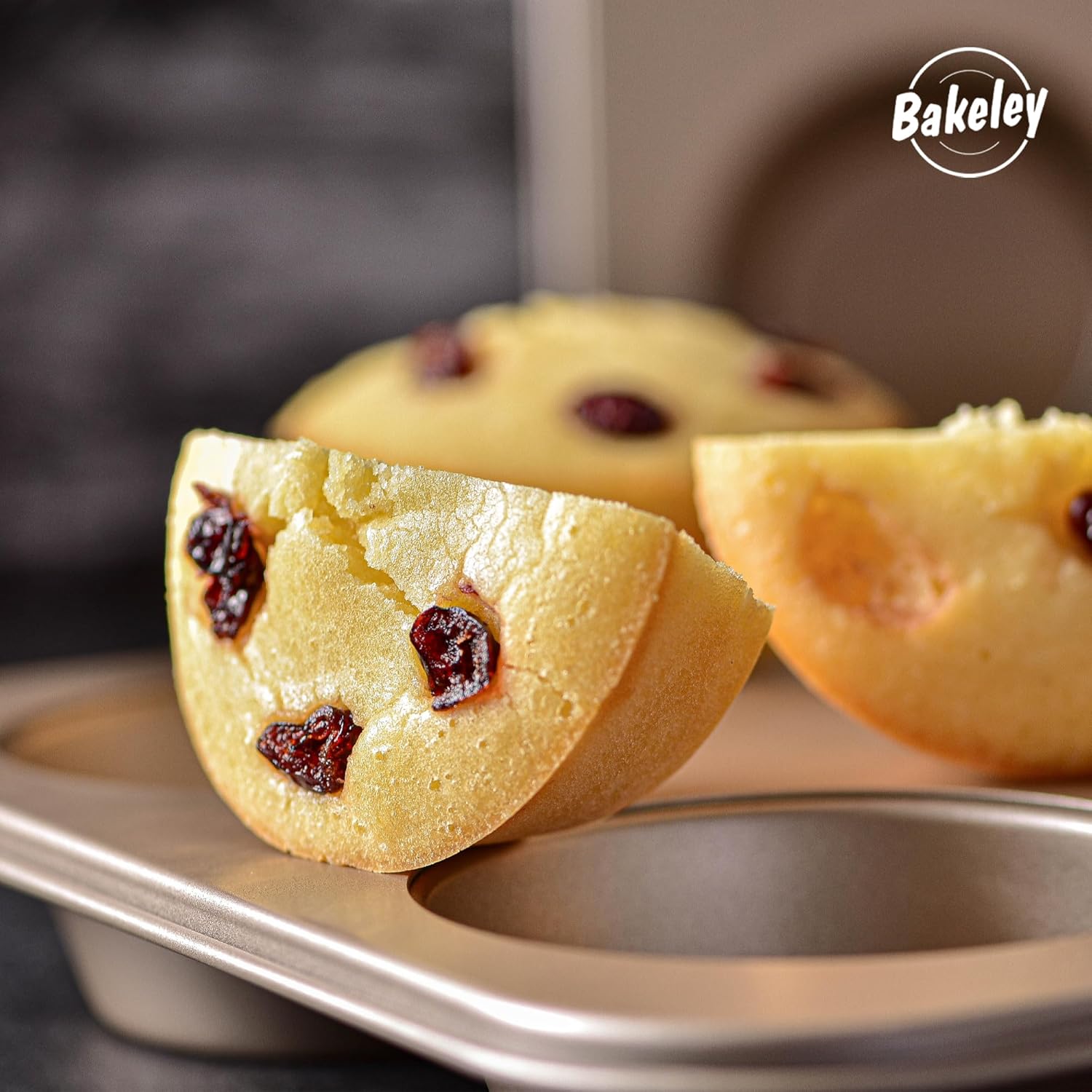 Muffin Cake Pan, 13-inch Non-Stick 6-Cavity Cupcake Pan Bakeware for Oven Baking (Champagne Gold)