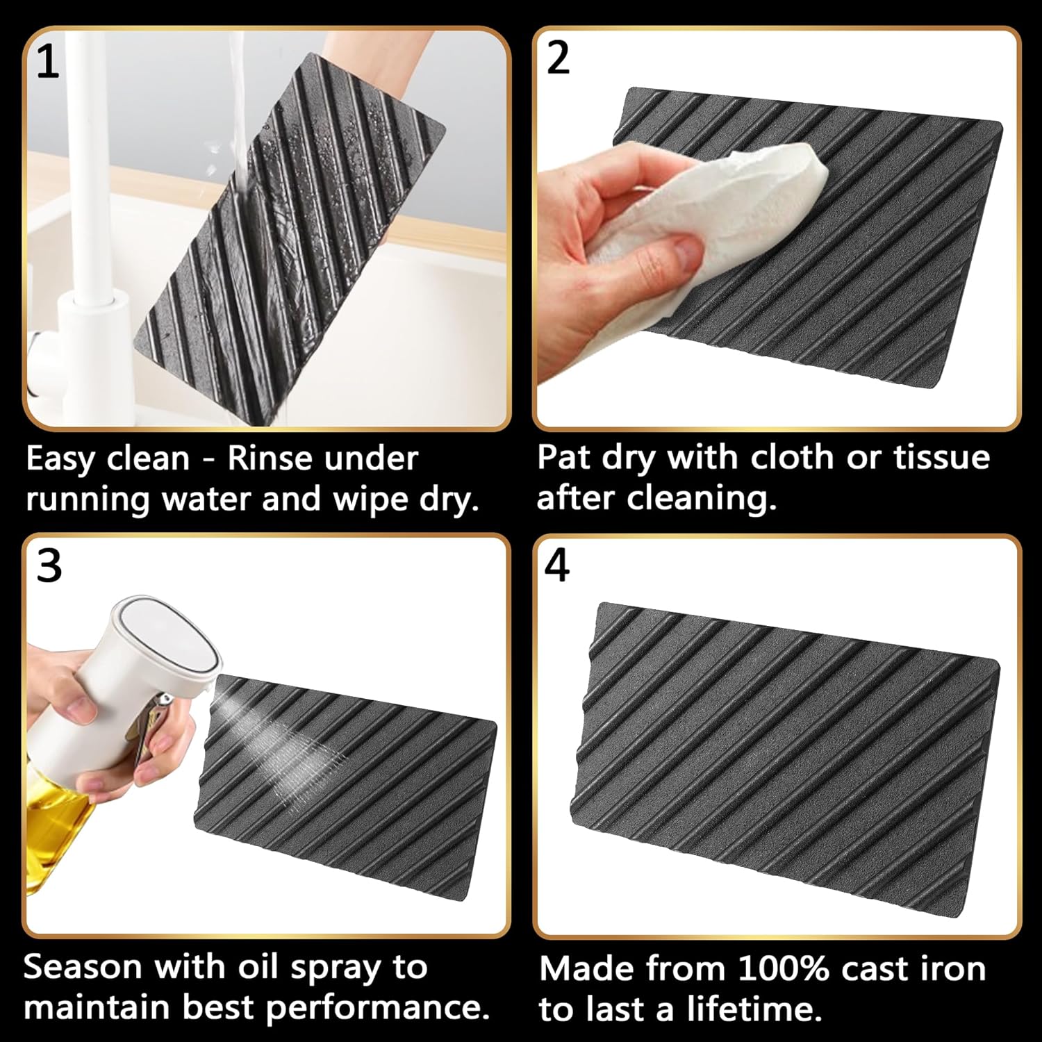 - HEAVY CAST IRON PRESS IN A GIFTABLE PACKAGE: Get ready to gift a tough and well-built griddle press! Our steak press weighs 2.78 lbs with 100% metal construction, designed to last a lifetime. With a heat-resistant silicone handle, it's easy to move around your griddle surface with a comfortable grip.