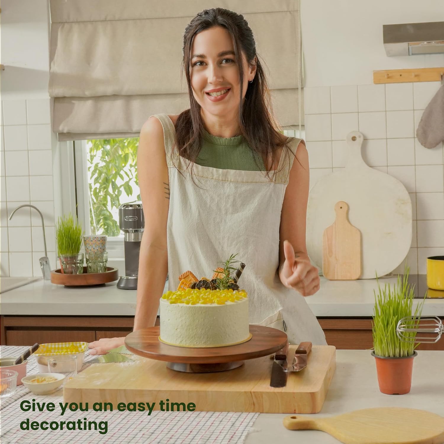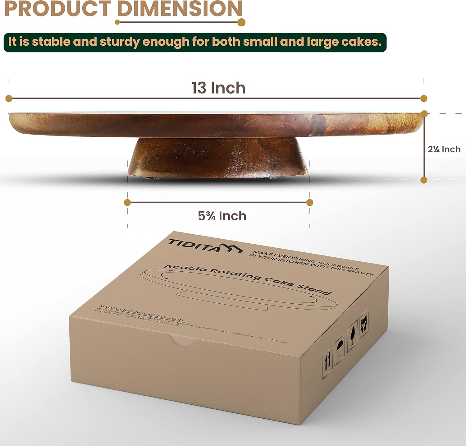 - Natural Material: Made of 100% Acacia wood, which is the most durable and top-quality wood used for manufacturing. It is a completely green and safe way to place and decorate cakes. Colors suitable for rustic or modern style.