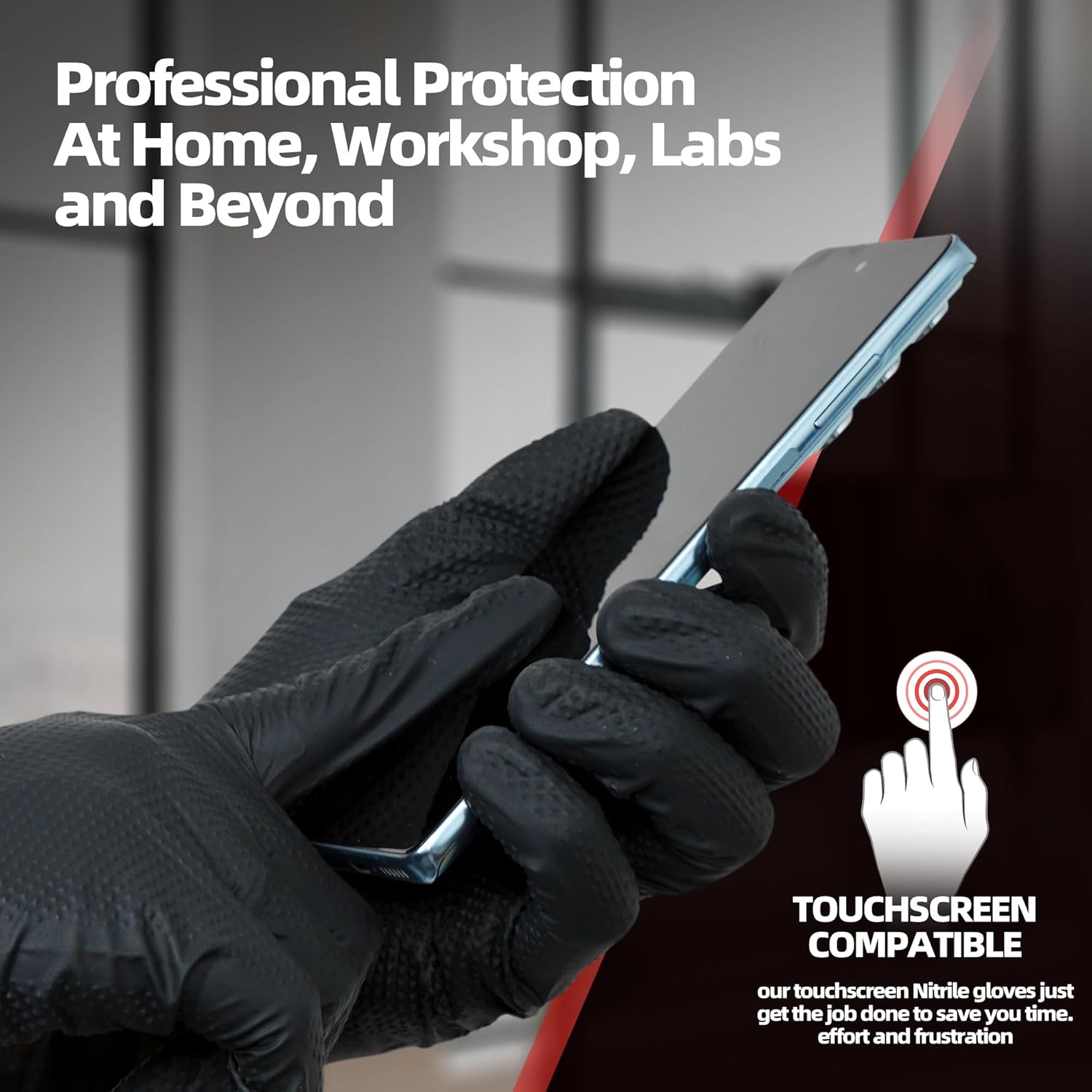 - High Visibility: The vibrant black nitrile gloves enhance visibility in dimly lit environments, significantly improving safety during heavy-duty tasks in mechanics, automotive, construction, and manufacturing industries