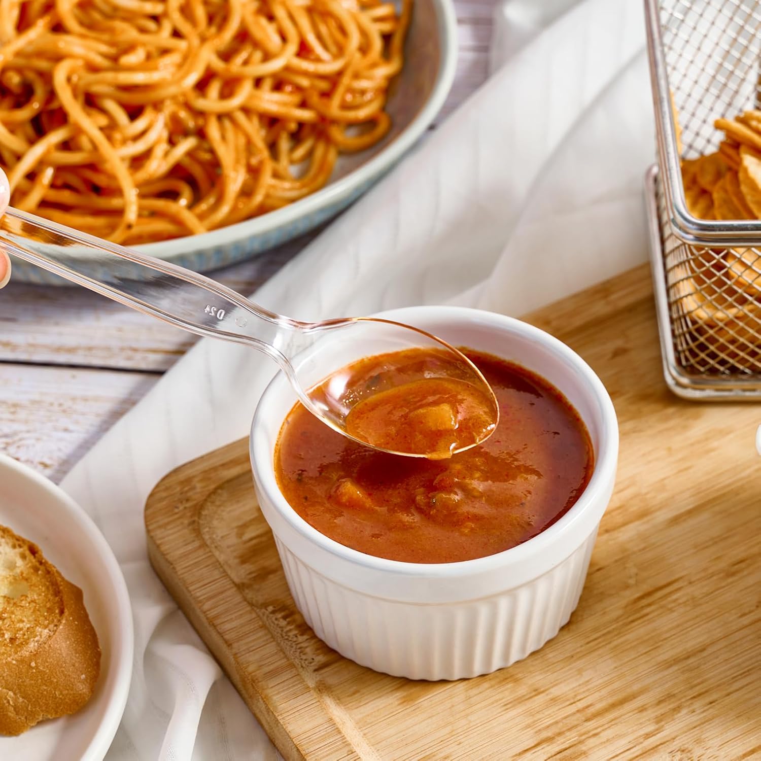 - .NO WASHING REQUIRED: These clear plastic utensils can be opened and used straight out of the box. They are convenient and disposable, allowing you to avoid washing dishes and making cleanup a breeze!