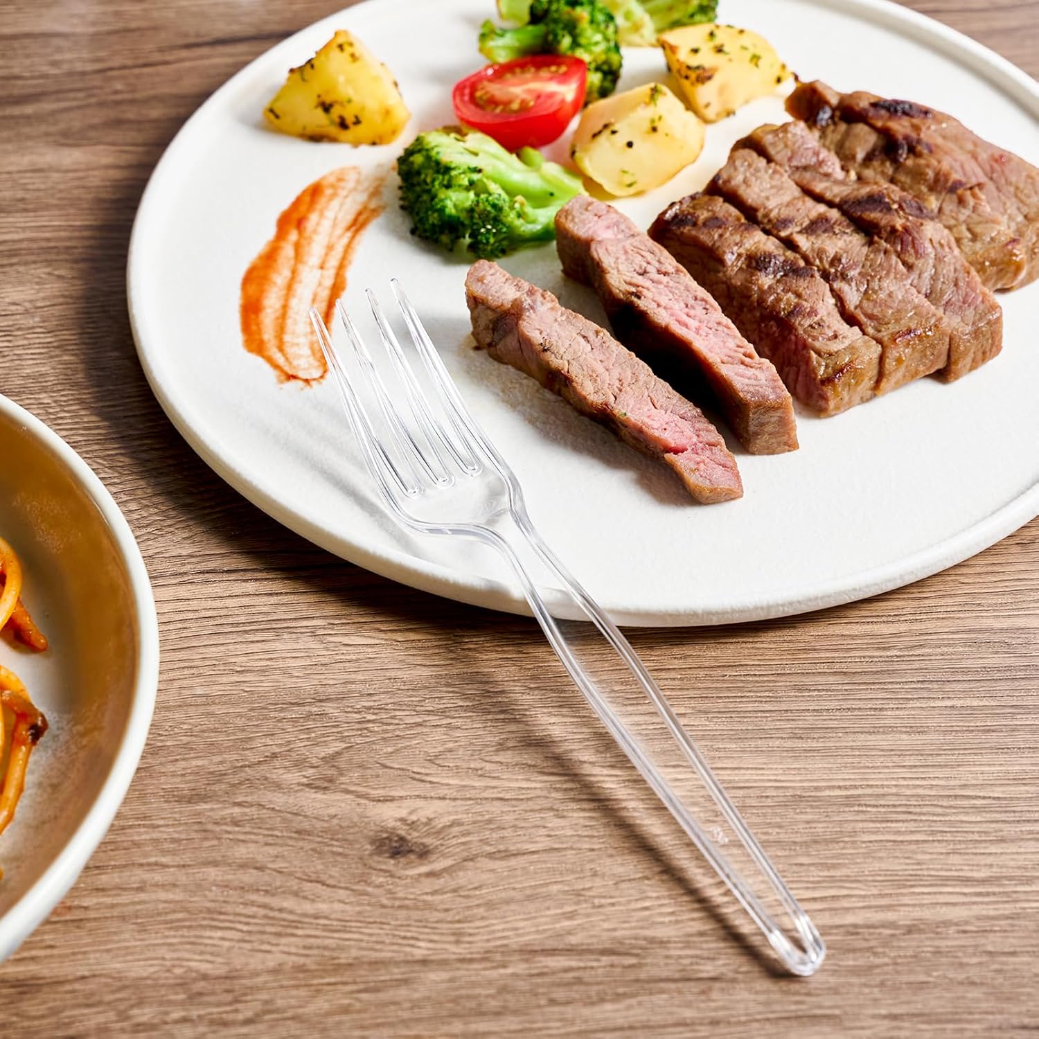 - STRONG & DURABLE: 7.1 inches long, disposable plastic fork weighs 5.1 grams, 300-pack disposable plastic clear forks and heavy-duty plastic cutlery. Suitable for hot and cold solids. Zero bending and breaking, giving you maximum comfort.