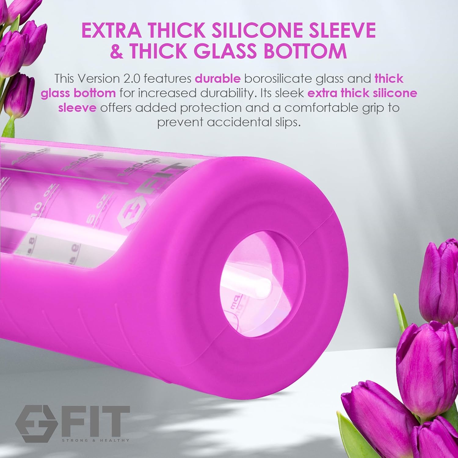 - Stay hydrated all day long: Say goodbye to constant refills; with just one refill in the afternoon, you can effortlessly achieve your daily water intake target whether you're at the gym, in the office, or at home; our large glass water bottle has time marks and ml measurements printed directly on the bottle, helping you stay on track with your water intake; it is leakproof, reusable, and makes an excellent gift for wellness-oriented individuals and fitness enthusiasts of all genders