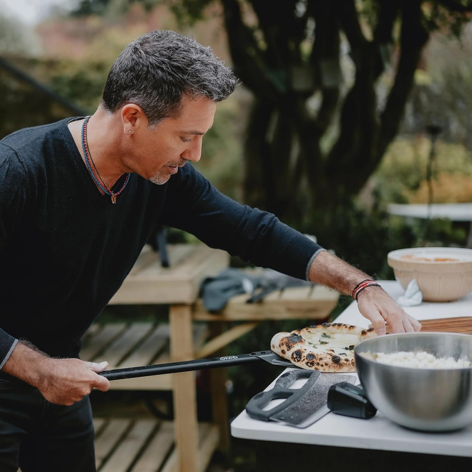 Gino D'Acampo 12" Perforated Pizza Peel: Effortlessly Slide, Rotate, and Retrieve Pizzas - Professional-Grade Perforated Pizza Paddle - Essential Tool for Perfect Homemade Pizzas