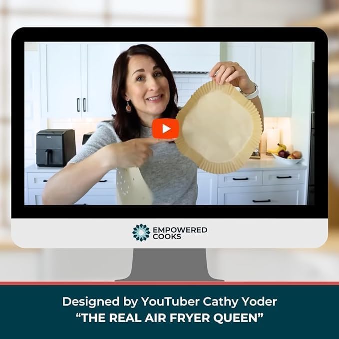 Cathy Yoder's AirFryer Paper Liners, 125 PCS 8-inch Square Air Fryer Liners Disposable, Premium, Food-Grade Easy Cleanup Air Fryer Parchment Paper Sheets, Airfryer Liner for 5-8QT, Baking & Roasting