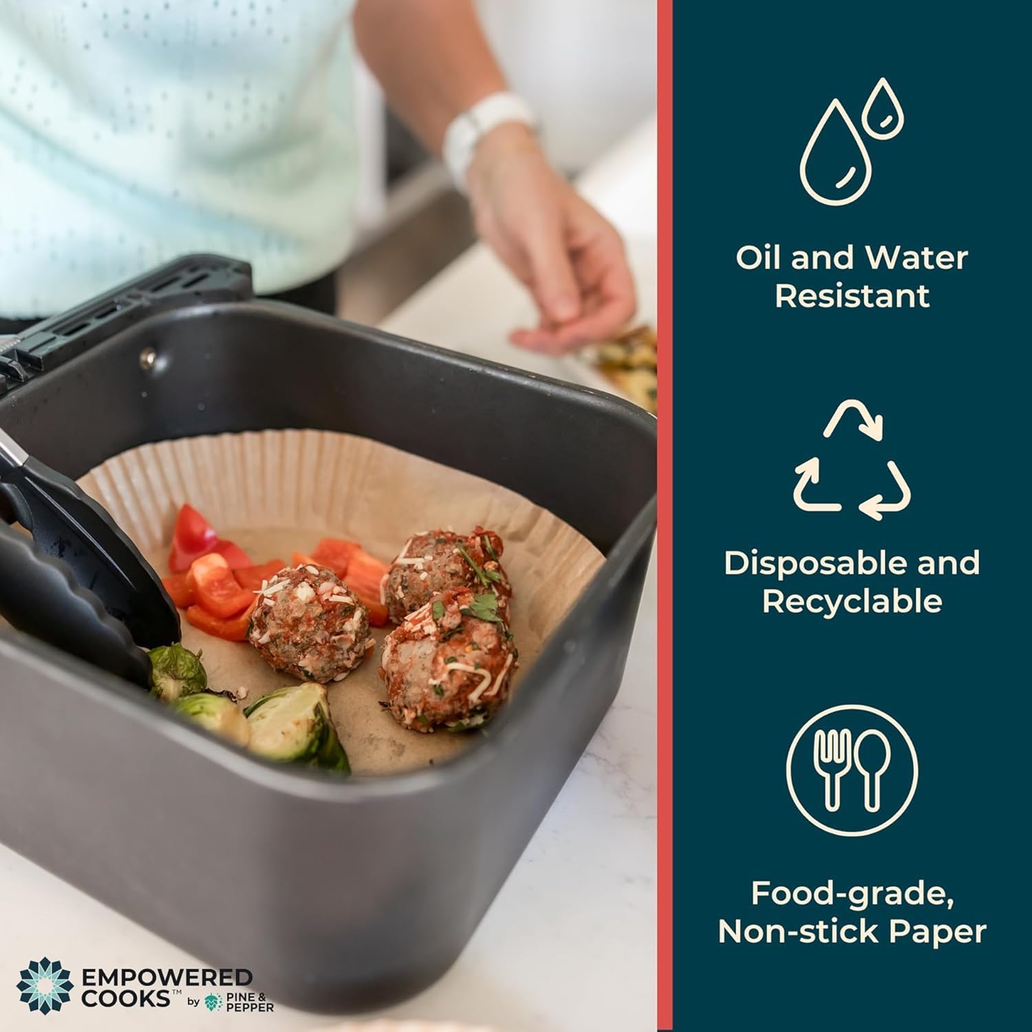 - Easy Cleanup: Keep your air fryer clean with our disposable air fryer liners made from non-stick parchment paper for air fryer, these square air fryer liners are compatible with Ninja, Cosori, Instant Pot, Philips, Cuisinart and more. No mess & scrubbing, just toss and go!